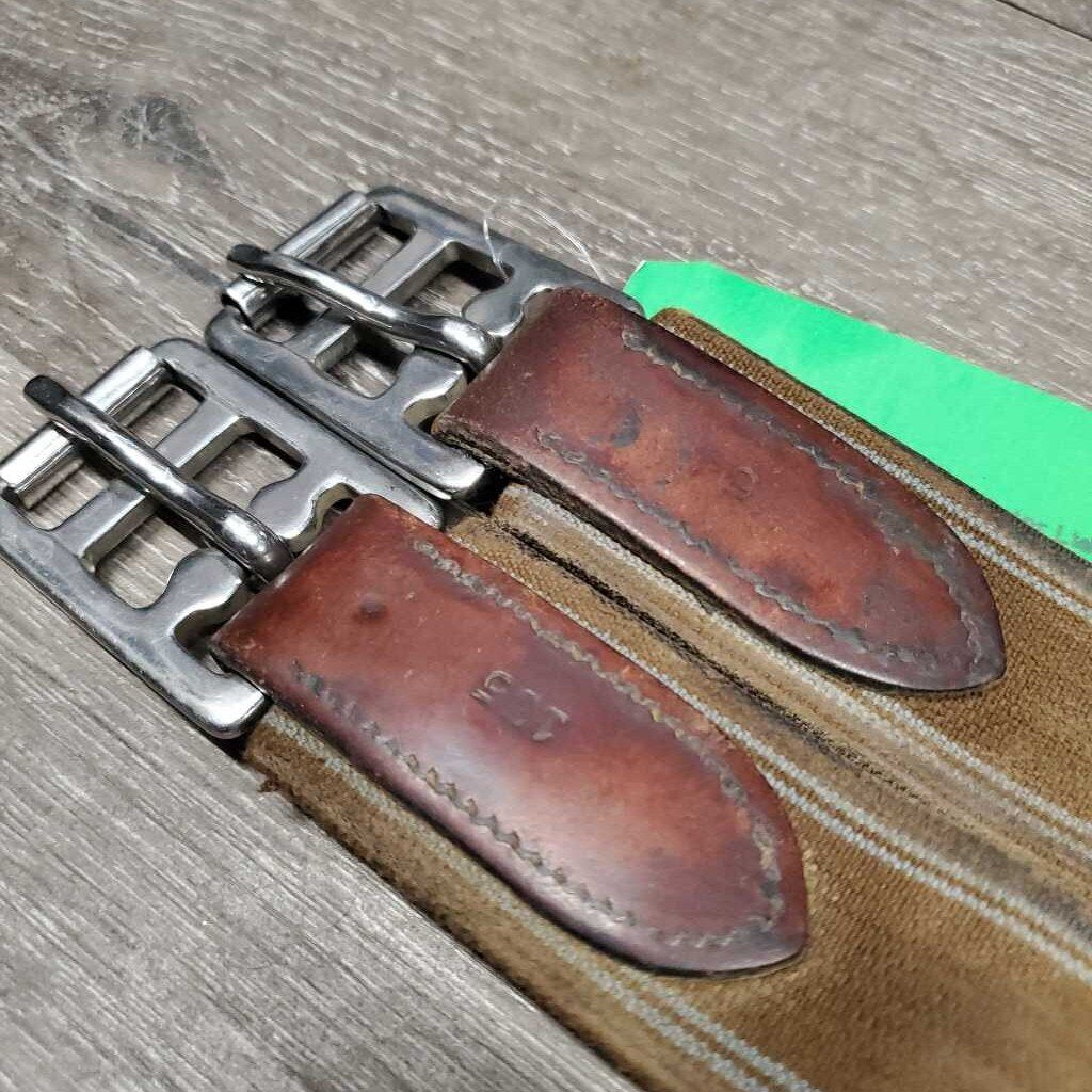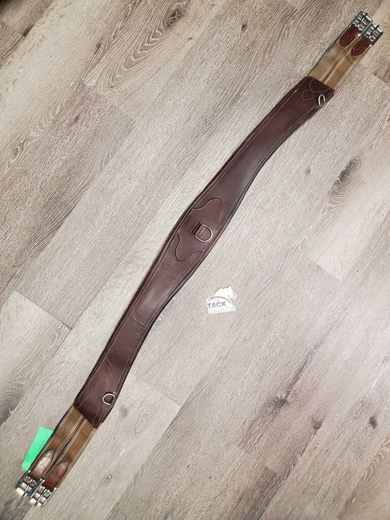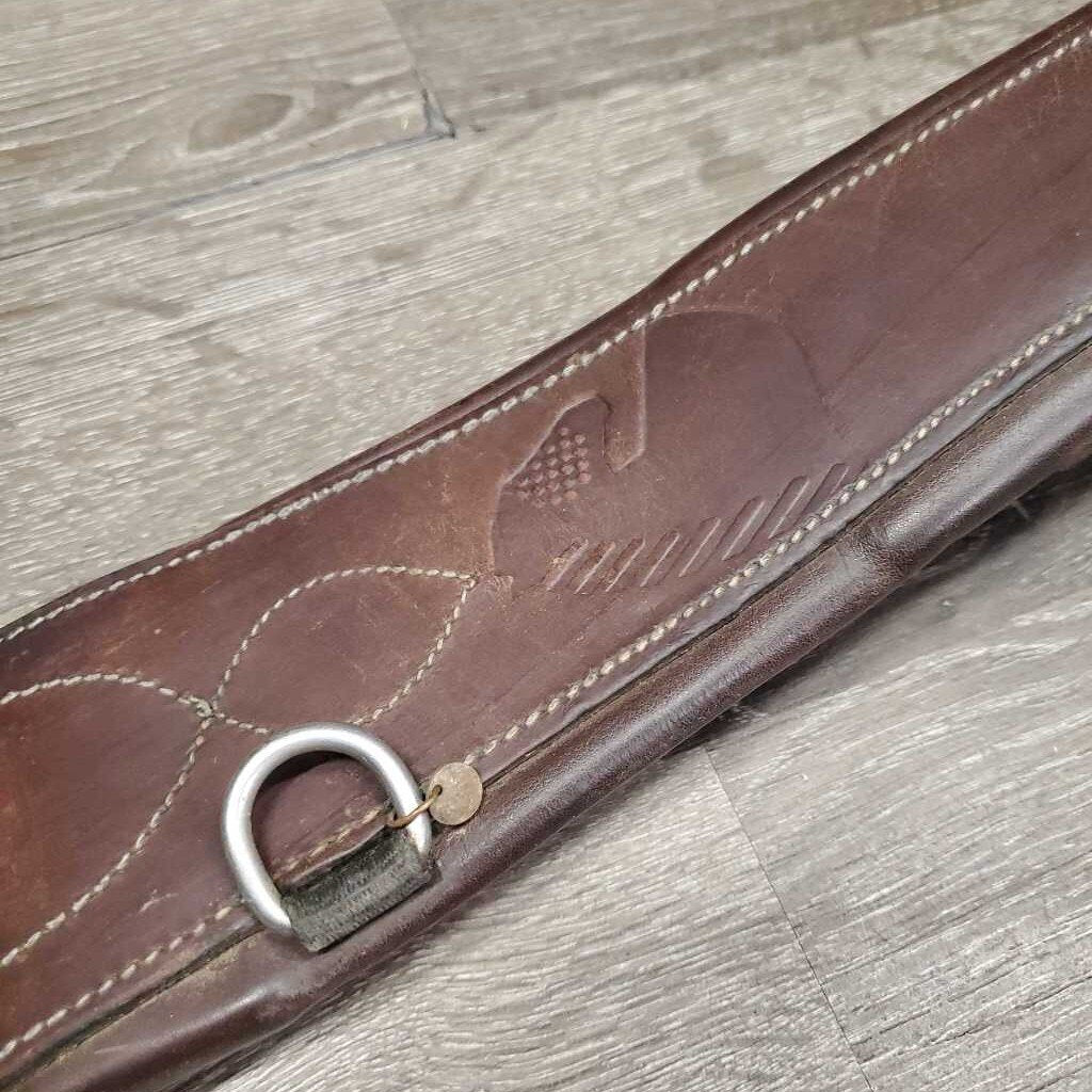 Padded Leather Girth, 2x els, 3x D Ring *vgc/gc, clean, rubs, faded, scratches, dry, deep/hard creases, stretched els