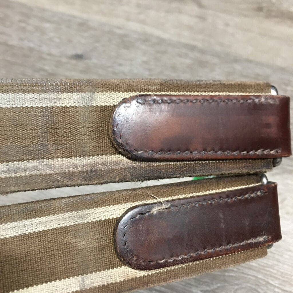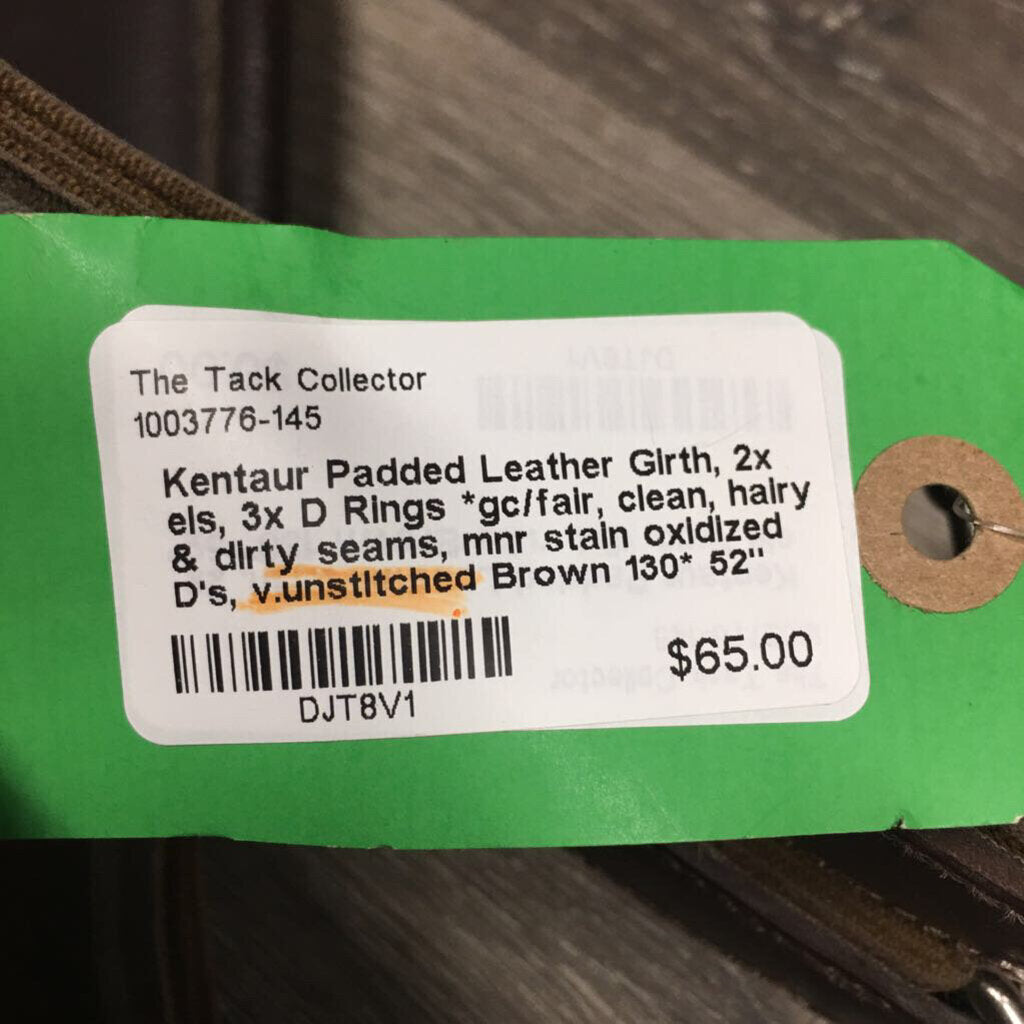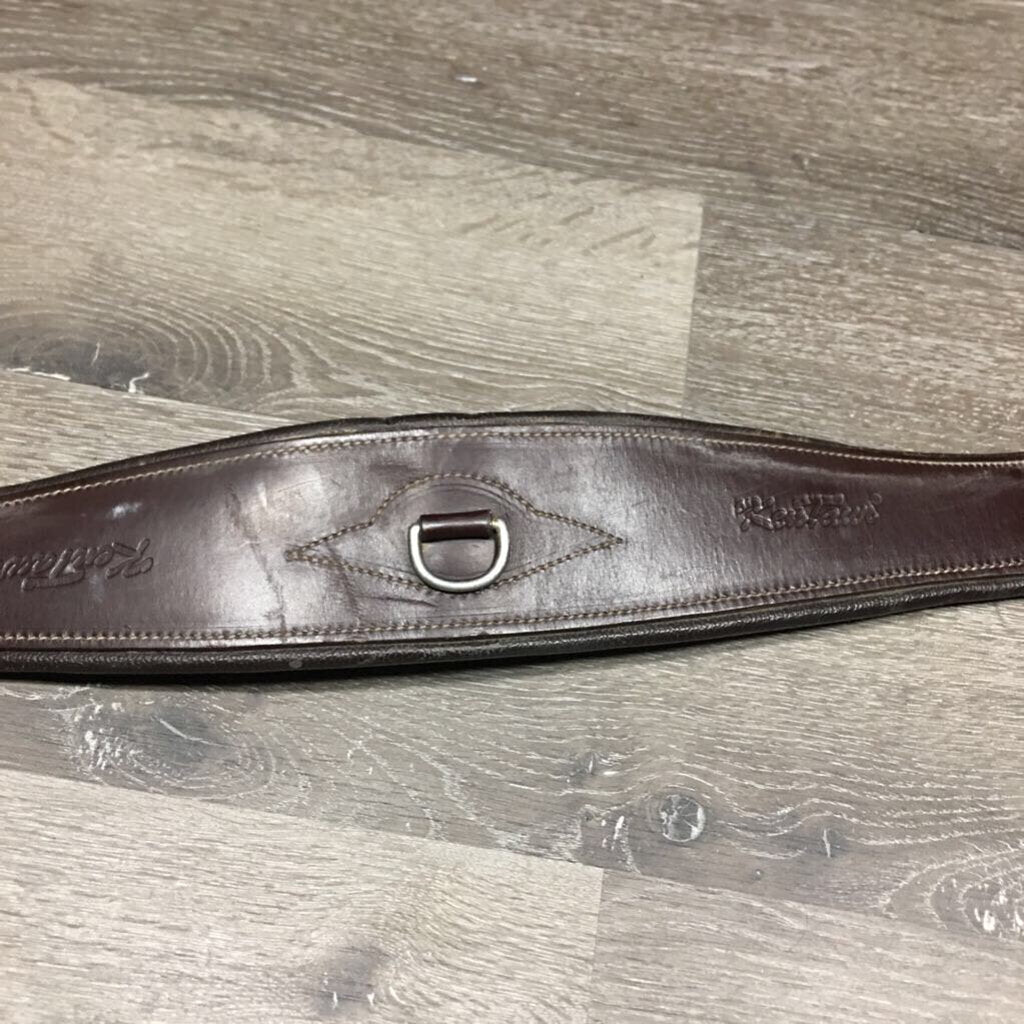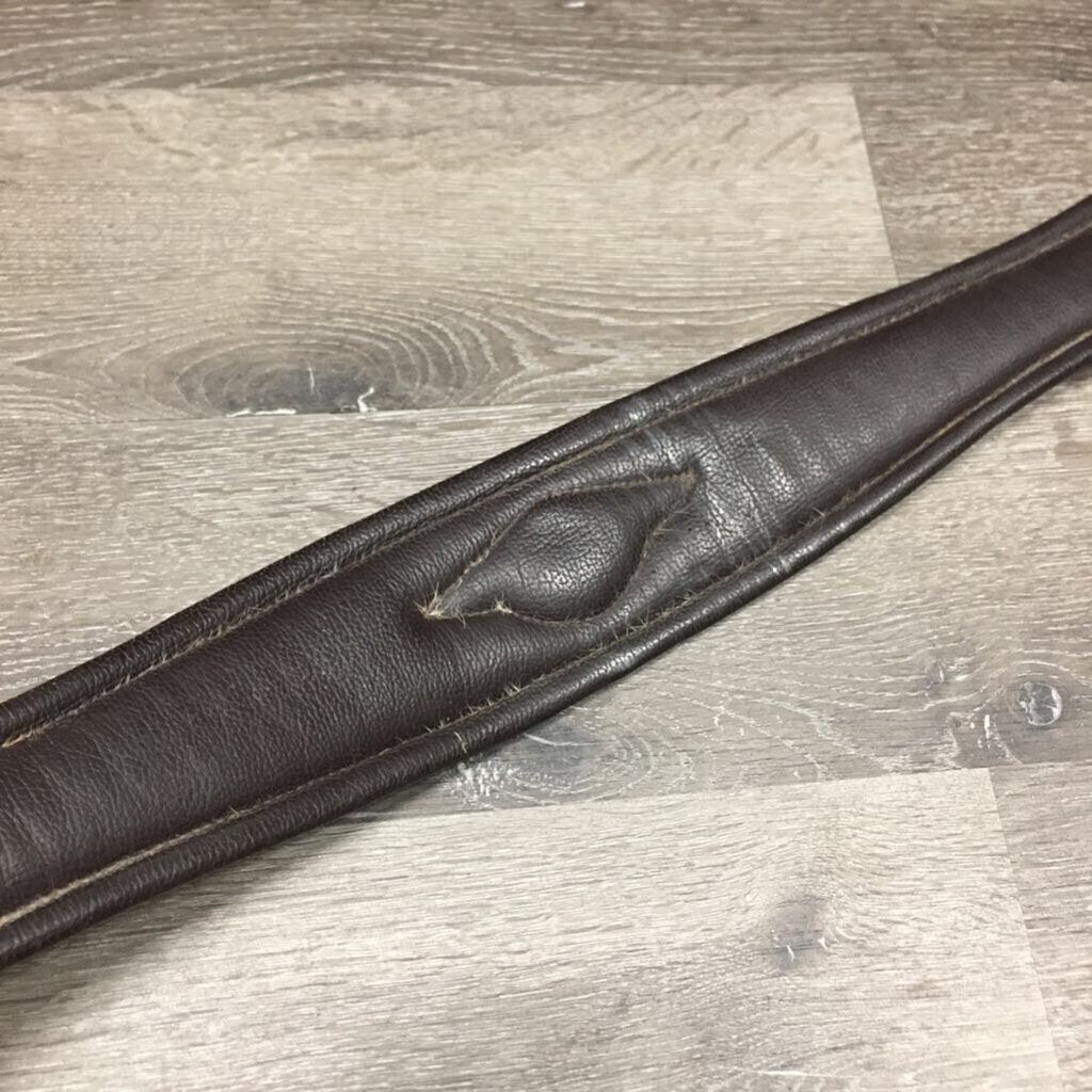 Padded Leather Girth, 2x els, 3x D Rings *gc/fair, clean, hairy & dirty seams, mnr stain oxidized D's, v.unstitched