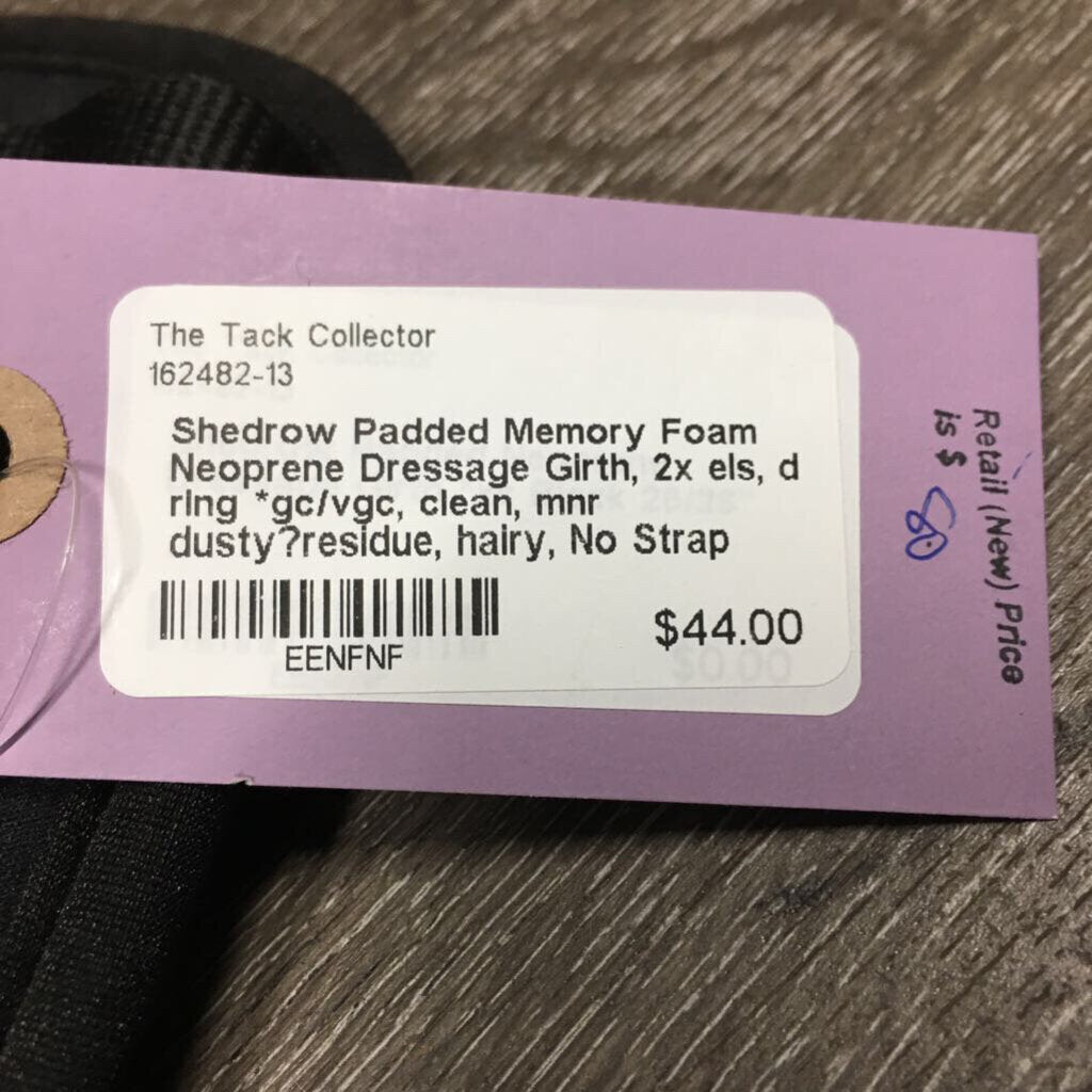Padded Memory Foam Neoprene Dressage Girth, 2x els, d ring *gc/vgc, clean, mnr dusty?residue, hairy, No Strap