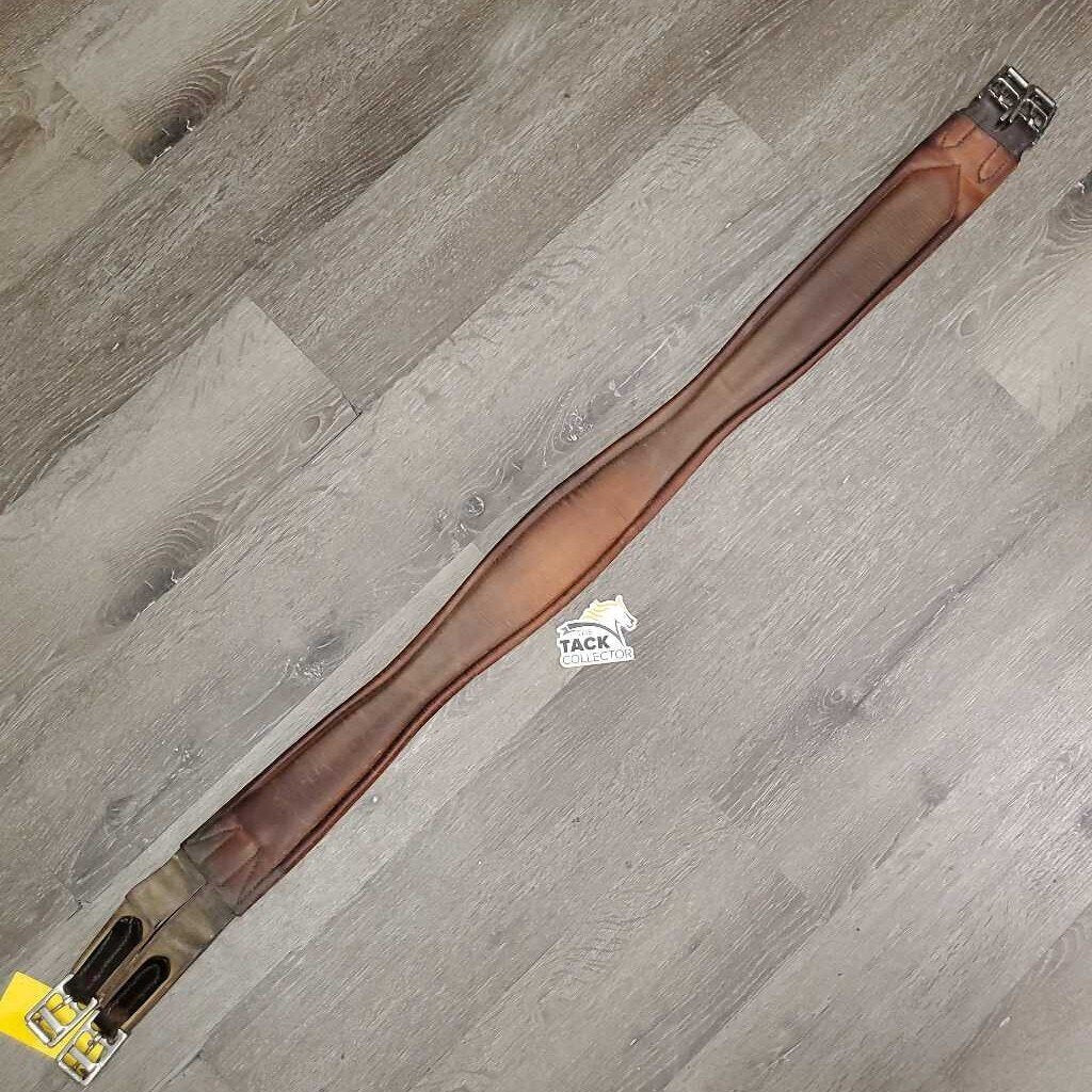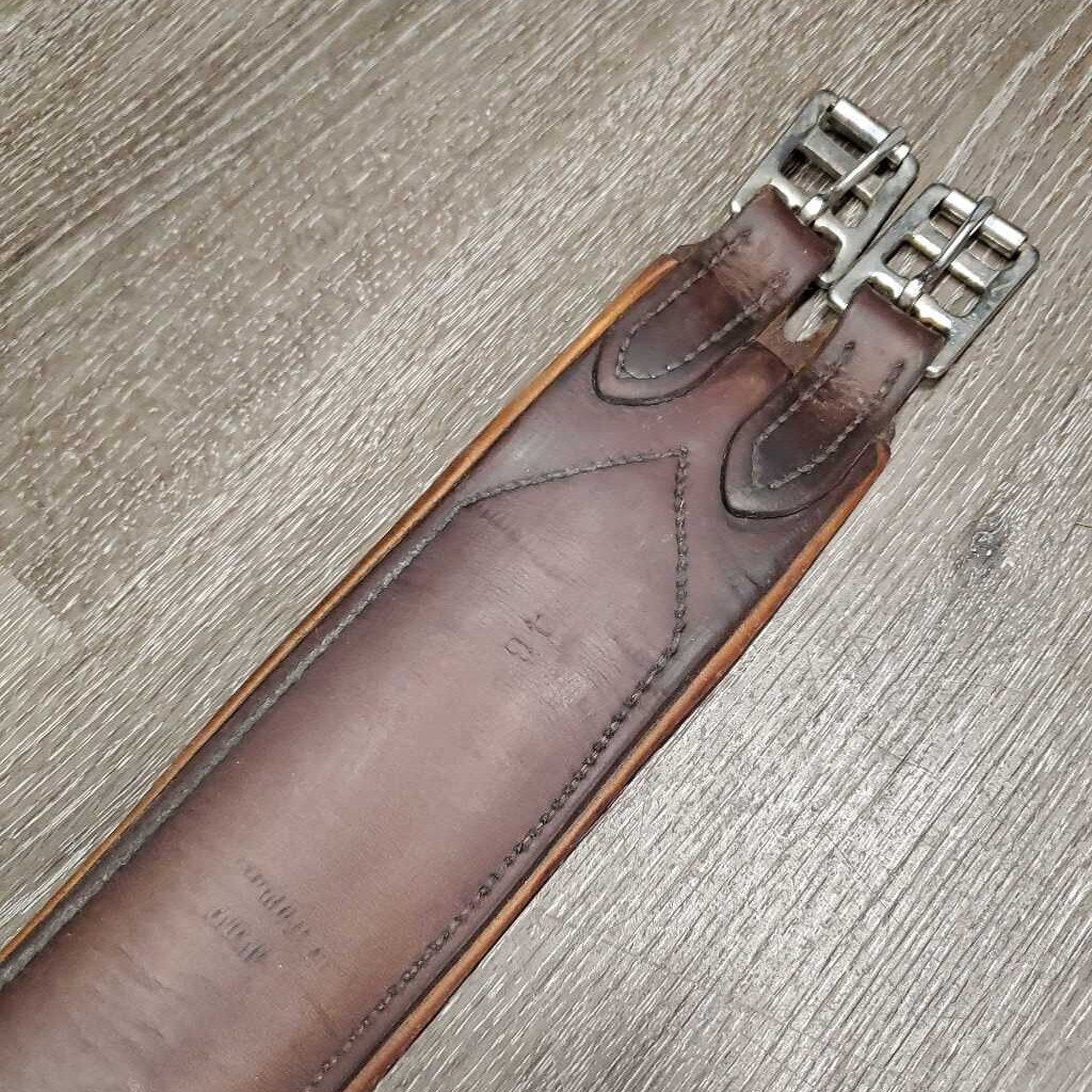 Thick Padded Leather Girth, 1x Els *gc/fair, clean, stains, v.torn elastic & leather edges