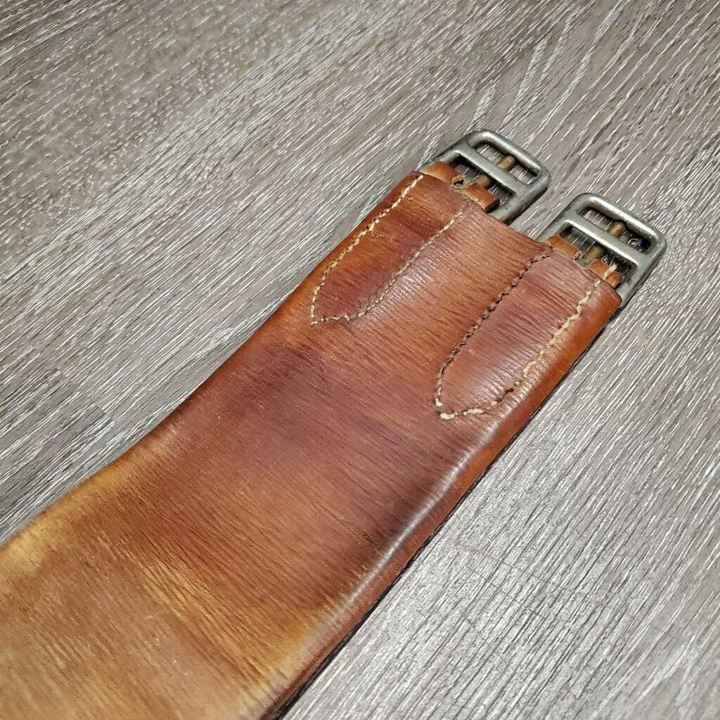 Vintage Trifold Leather Girth, 1x Els *gc, older, clean, hard/curled edge, dry, stains, v.long els, hand stitched ends, UNSTITCHED