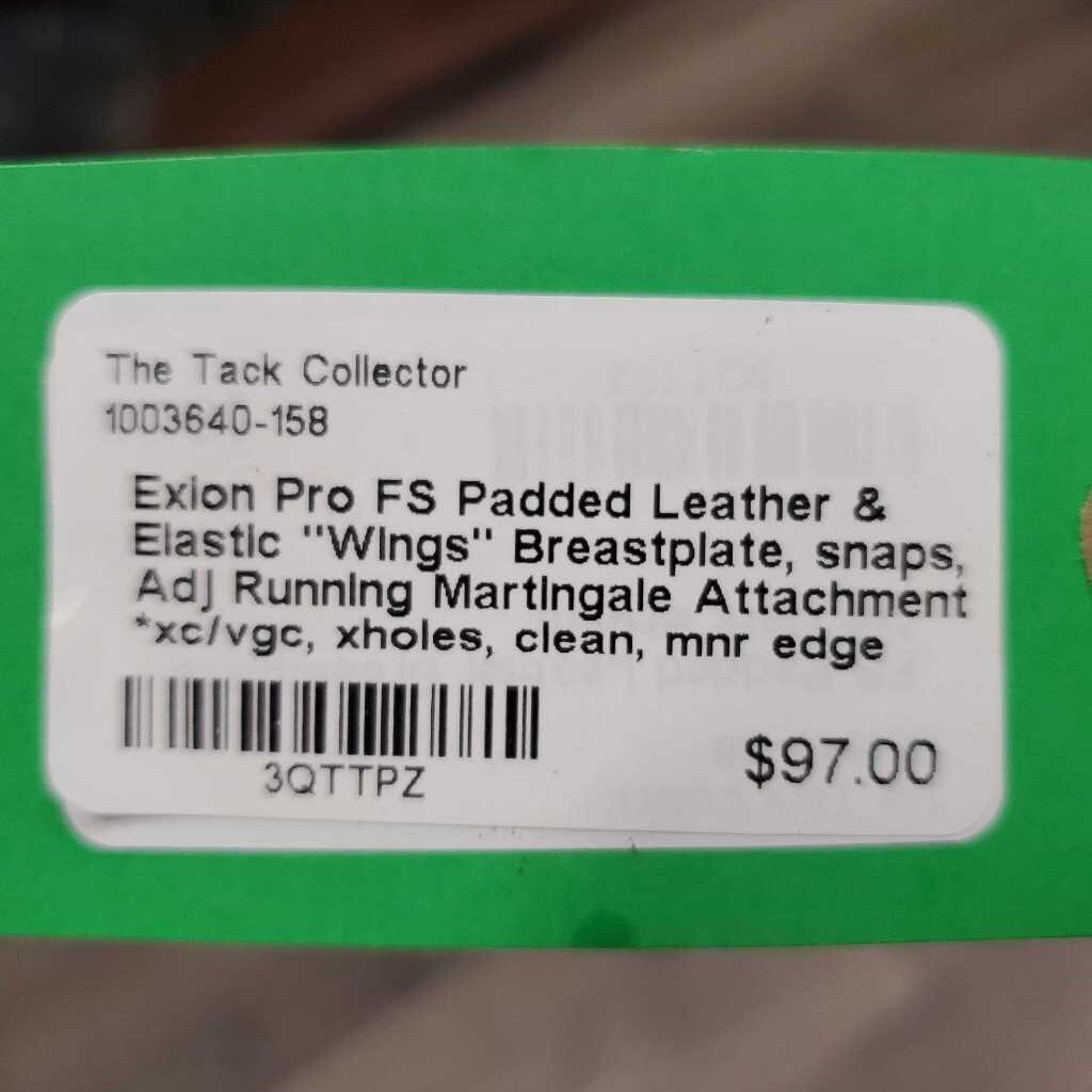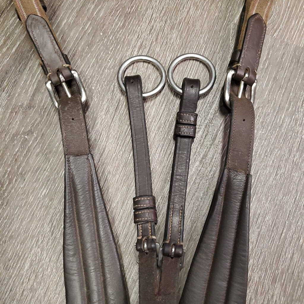 FS Padded Leather & Elastic "Wings" Breastplate, snaps, Adj Running Martingale Attachment *xc/vgc, xholes, clean, mnr edge scrapes & dirt SALE