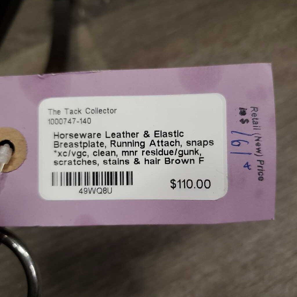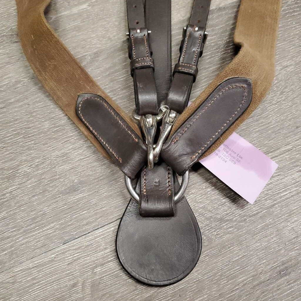 Leather & Elastic Breastplate, Running Attach, snaps *xc/vgc, clean, mnr residue/gunk, scratches, stains & hair