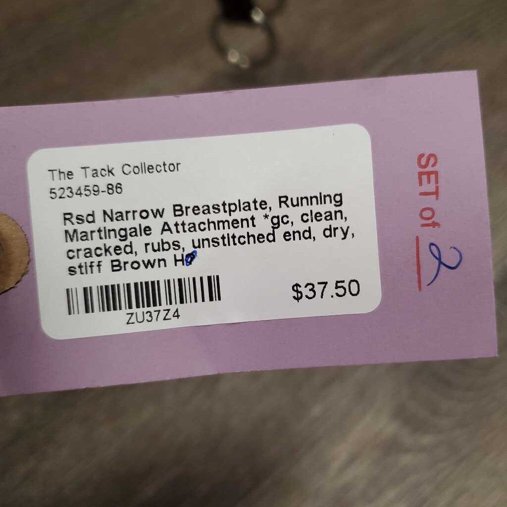 Rsd Narrow Breastplate, Running Martingale Attachment *gc, clean, cracked, rubs, unstitched end, dry, stiff