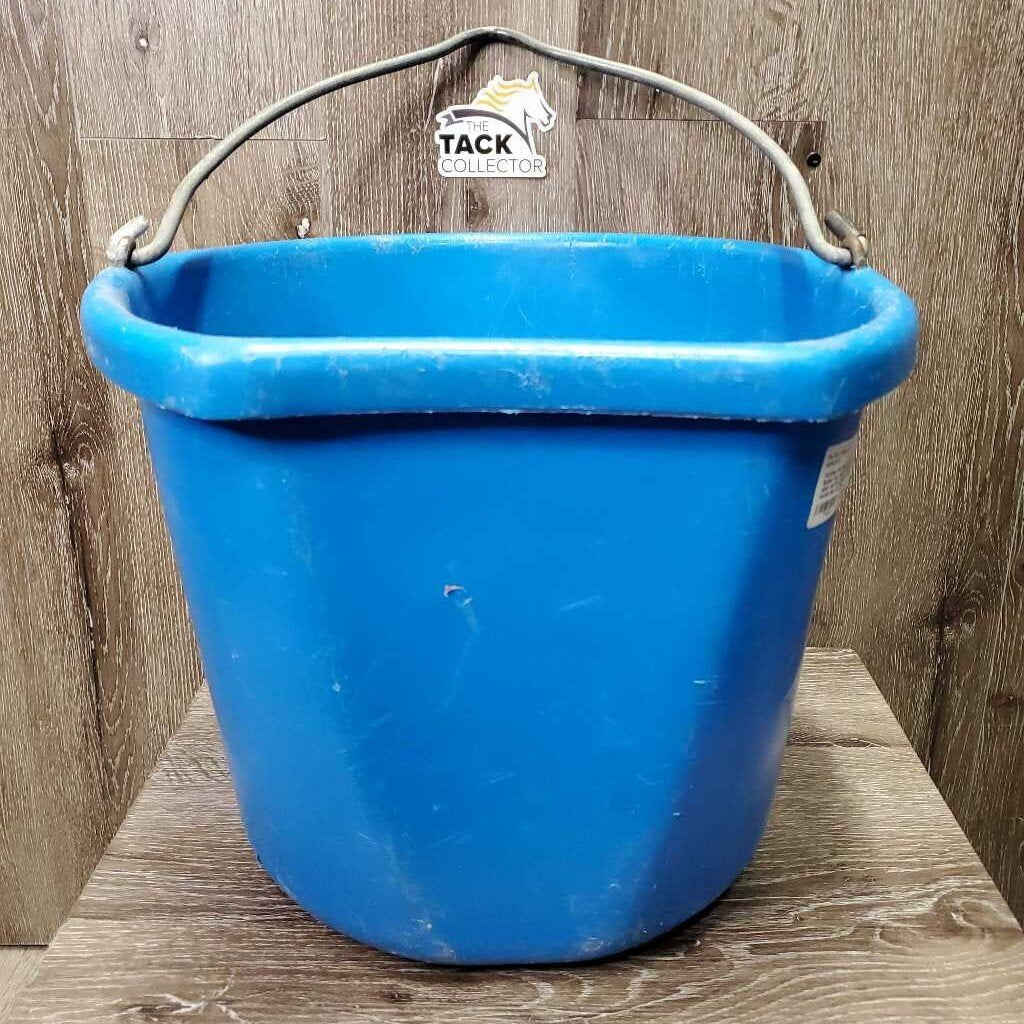 Flat Back Plastic Water Bucket *gc, clean, scratches, chews, older, mnr bent edges, oxidized handle