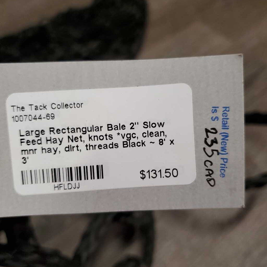 Large Rectangular Bale 2" Slow Feed Hay Net, knots *vgc, clean, mnr hay, dirt, threads