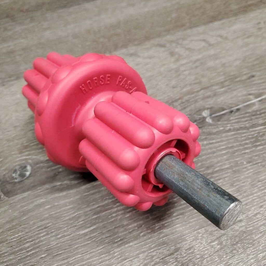 The Horseman’s Pride Pas-a-fier is manufactured from apple scented innovative polymer for added strength. The Pas-a-fier is a rotating device that allows the horse to massage their gums for hours, an excellent stall toy and boredom breaker.