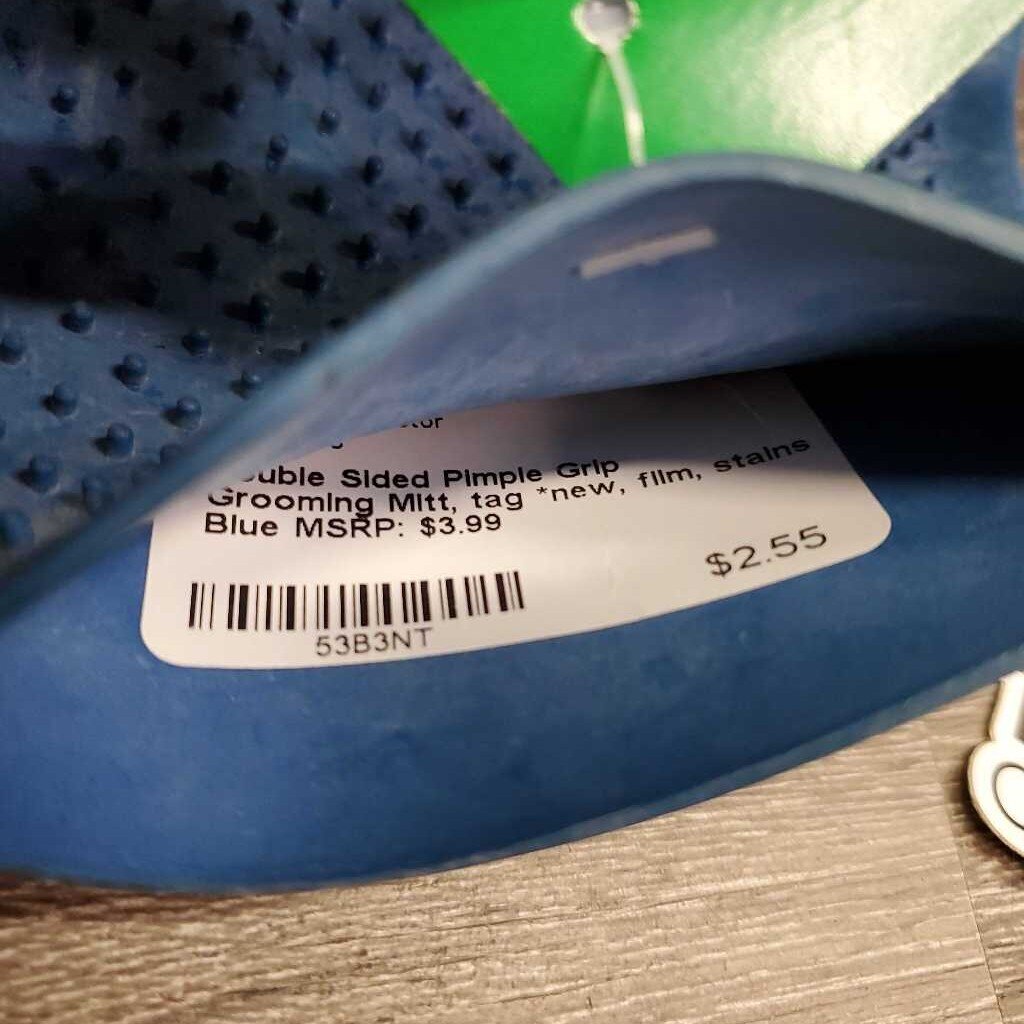 Double Sided Pimple Grip Grooming Mitt, tag *new, film, stains