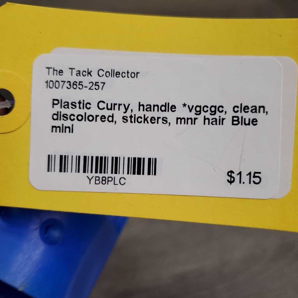 Plastic Curry, handle *vgcgc, clean, discolored, stickers, mnr hair