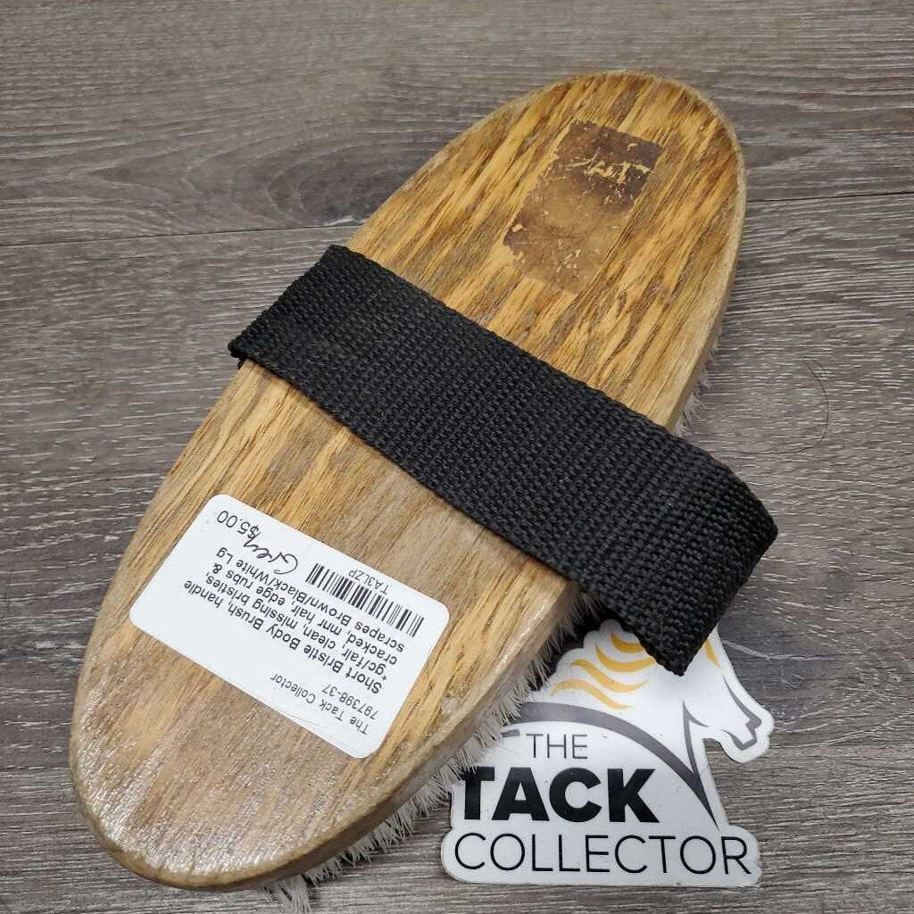 Short Bristle Body Brush, handle *gc/fair, clean, missing bristles, cracked, mnr hair, edge rubs & scrapes