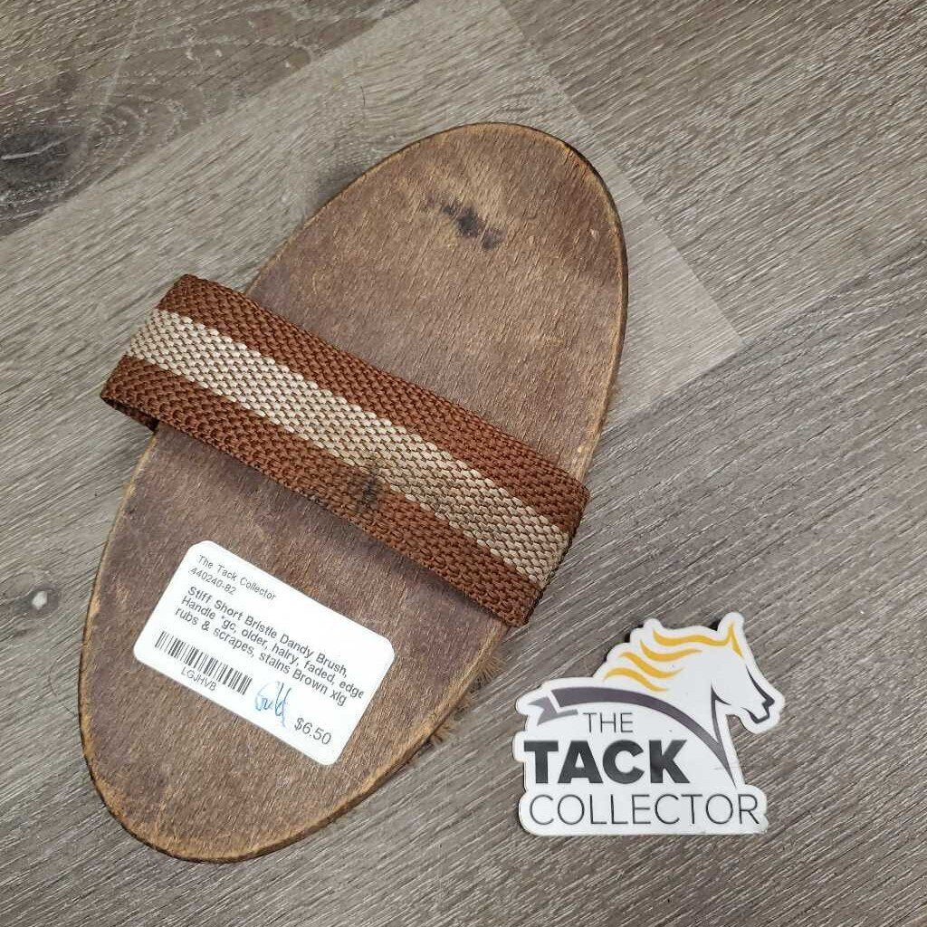 Stiff Short Bristle Dandy Brush, Handle *gc, older, hairy, faded, edge rubs & scrapes, stains