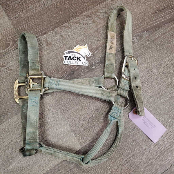 Thick Nylon Halter, adj, snap *vgc, clean, faded & discolored, stains, mnr stretched holes, scraped hardware Weaver Size: Foal - Mini $12.75