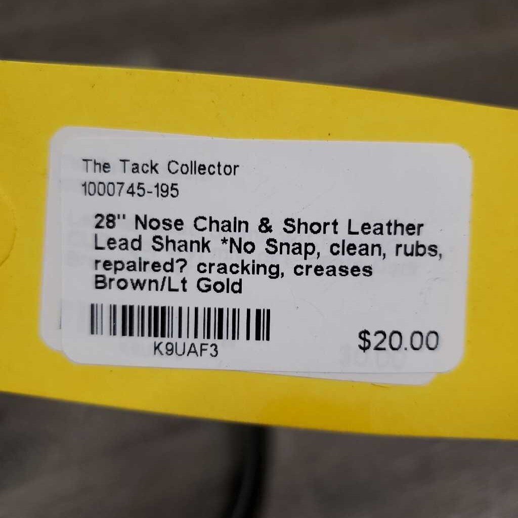 28" Nose Chain & Short Leather Lead Shank *No Snap, clean, rubs, repaired? cracking, creases