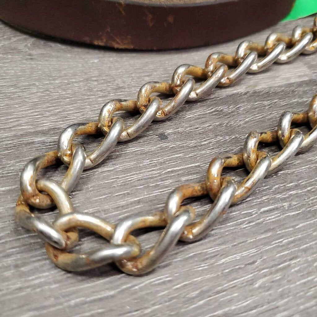 78" Thin Leather Lead Shank, 20" Nose Chain *gc, clean, rust, scrapes, scratches, slices