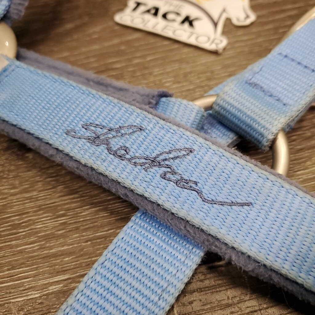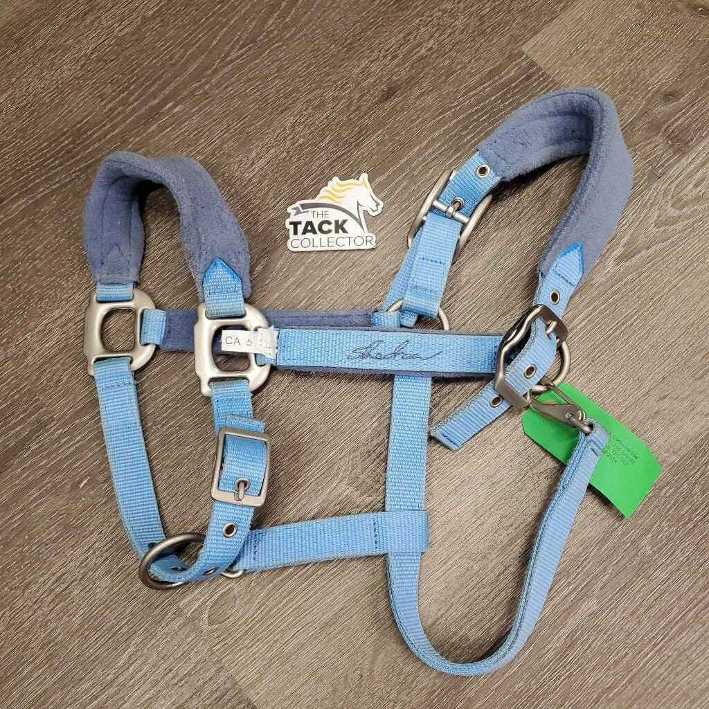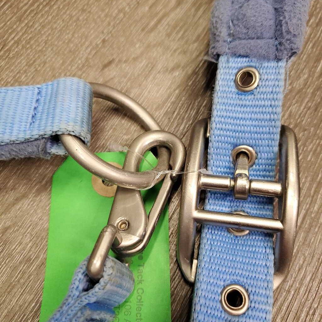 Nylon Fleece Lined Breakaway Halter, adj, snap *gc, MISSING Leather Breakaway Strap, clean, stains, rubs & hair