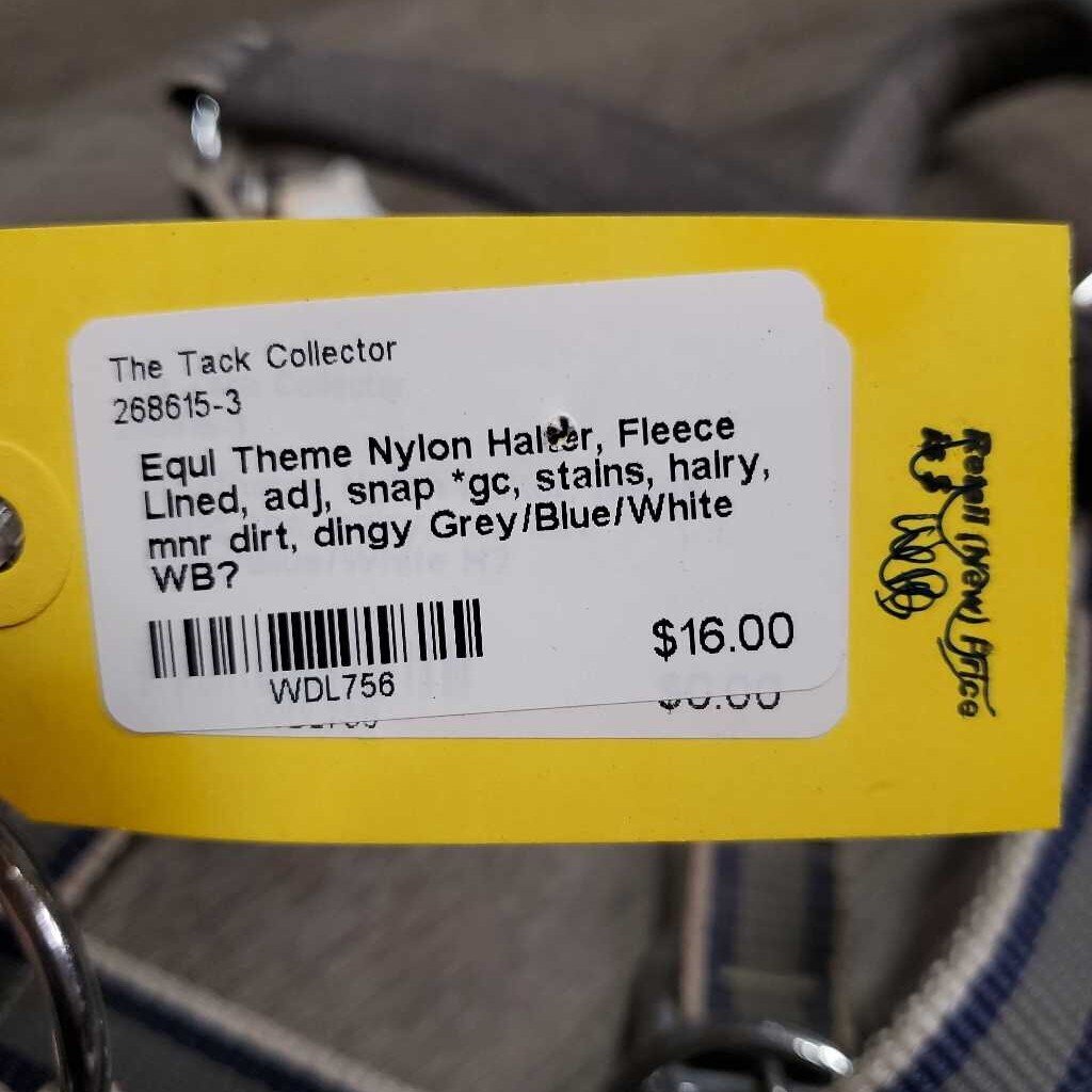 Nylon Halter, Fleece Lined, adj, snap *gc, stains, hairy, mnr dirt, dingy