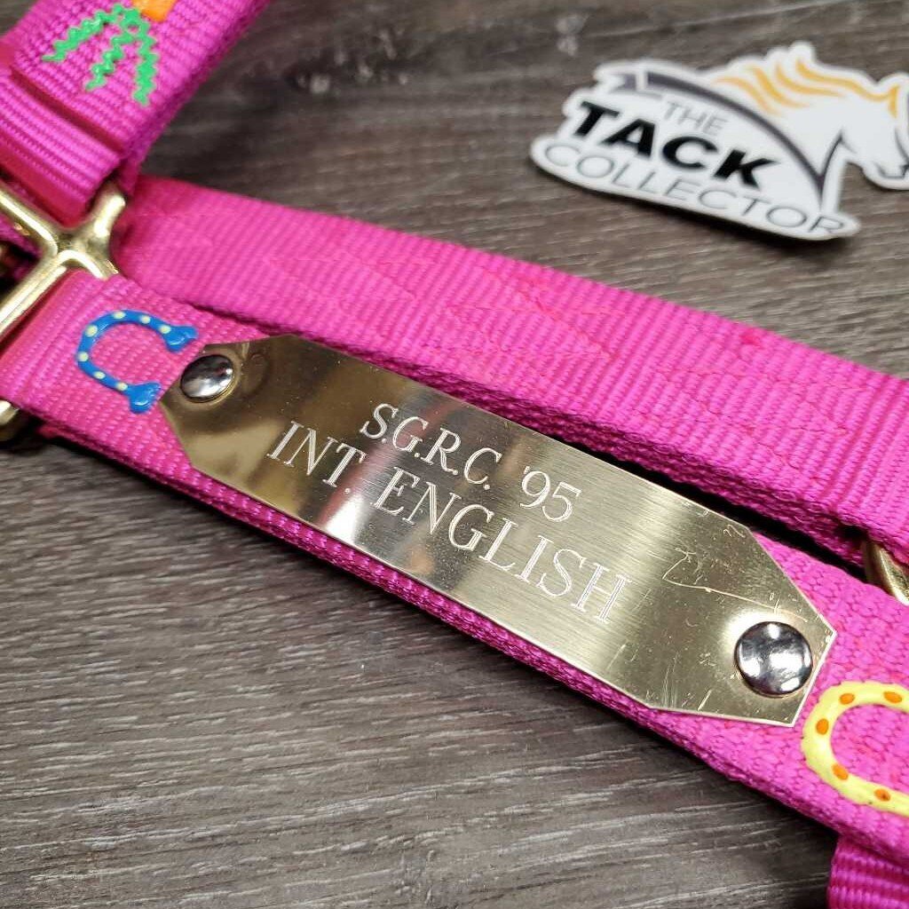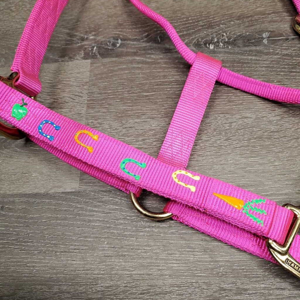 Nylon Halter, spring snap, metal plate, horseshoe design *xc, older