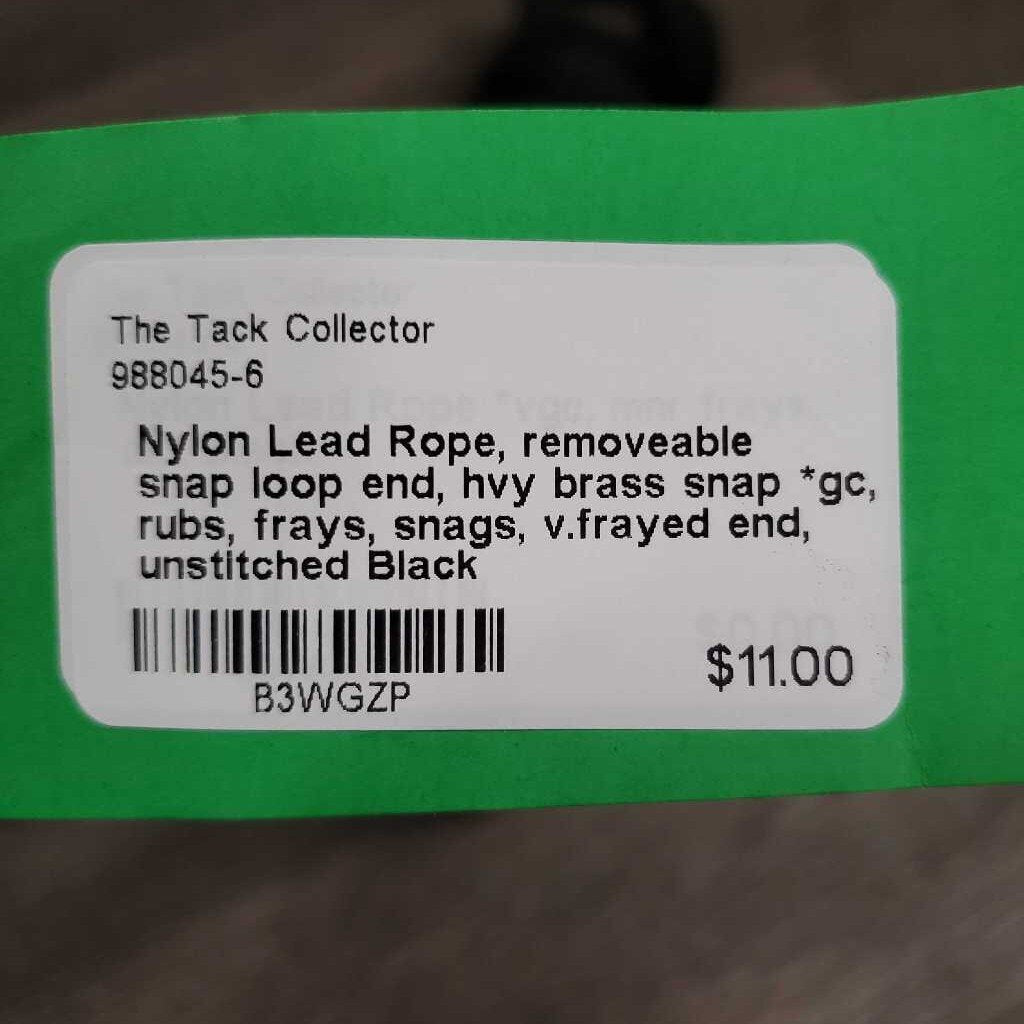 Nylon Lead Rope, removeable snap loop end, hvy brass snap *gc, rubs, frays, snags, v.frayed end, unstitched