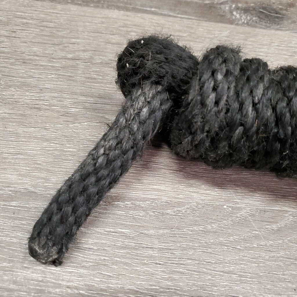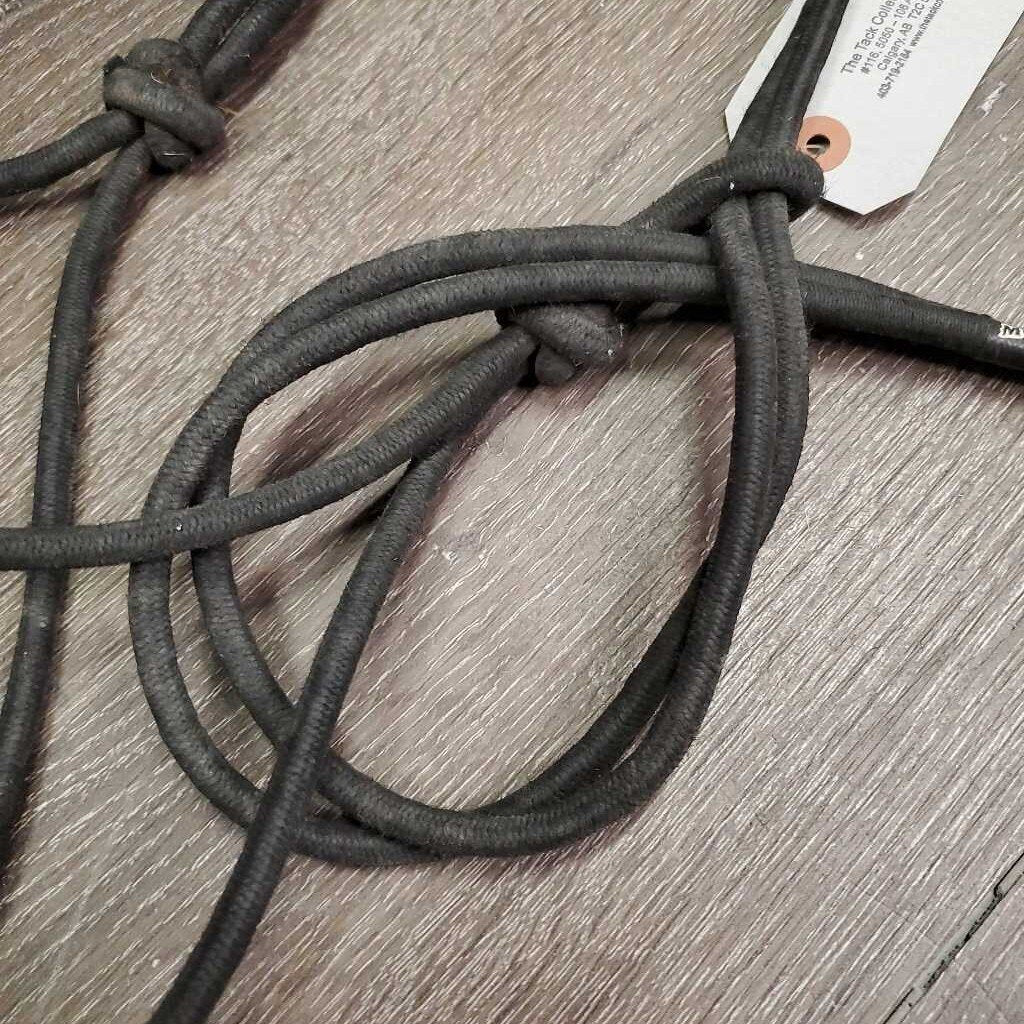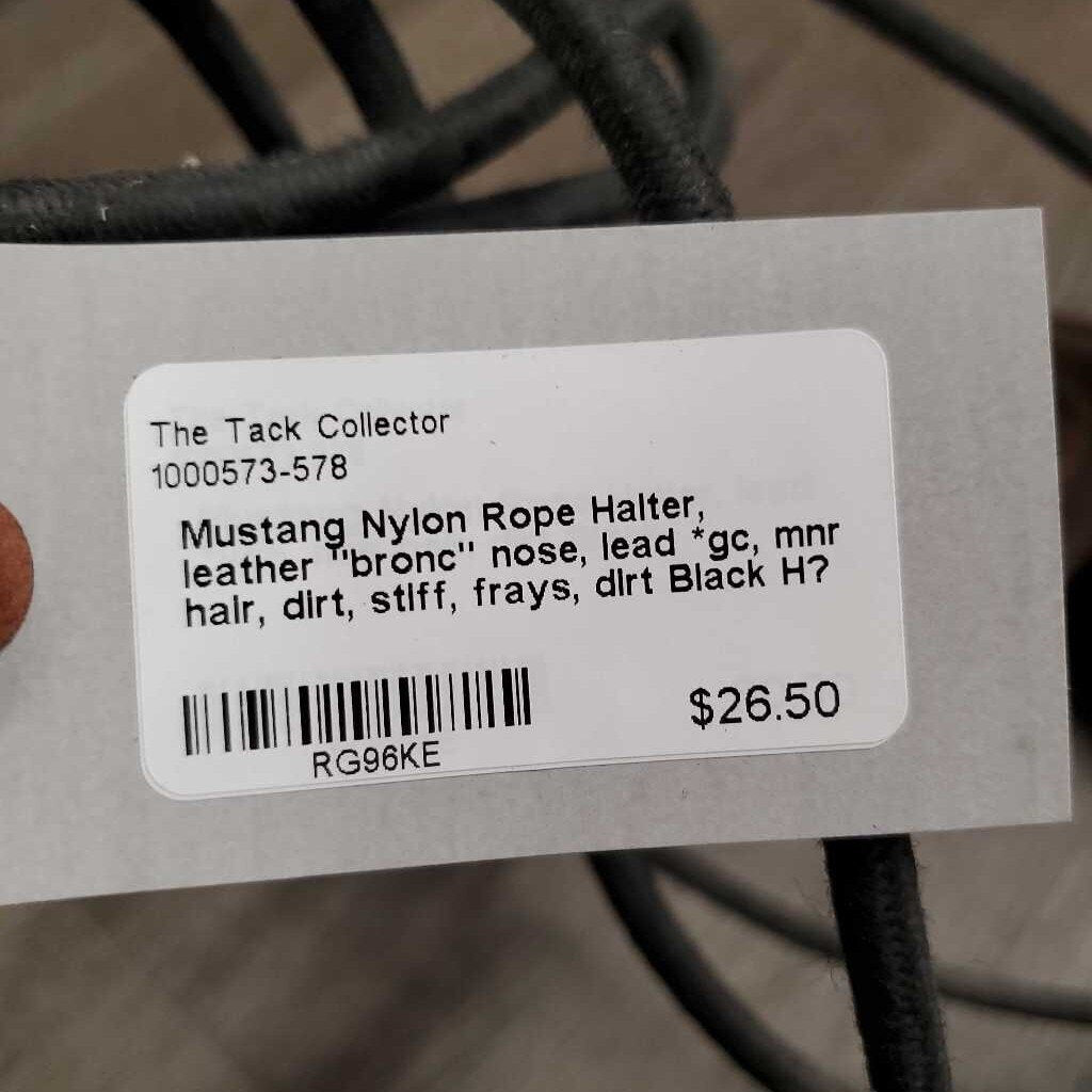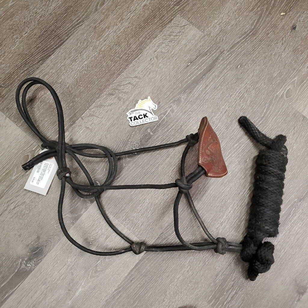 Nylon Rope Halter, leather "bronc" nose, lead *gc, mnr hair, dirt, stiff, frays, dirt