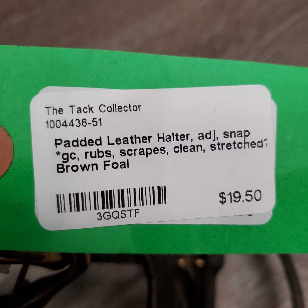 Padded Leather Halter, adj, snap *gc, rubs, scrapes, clean, stretched?