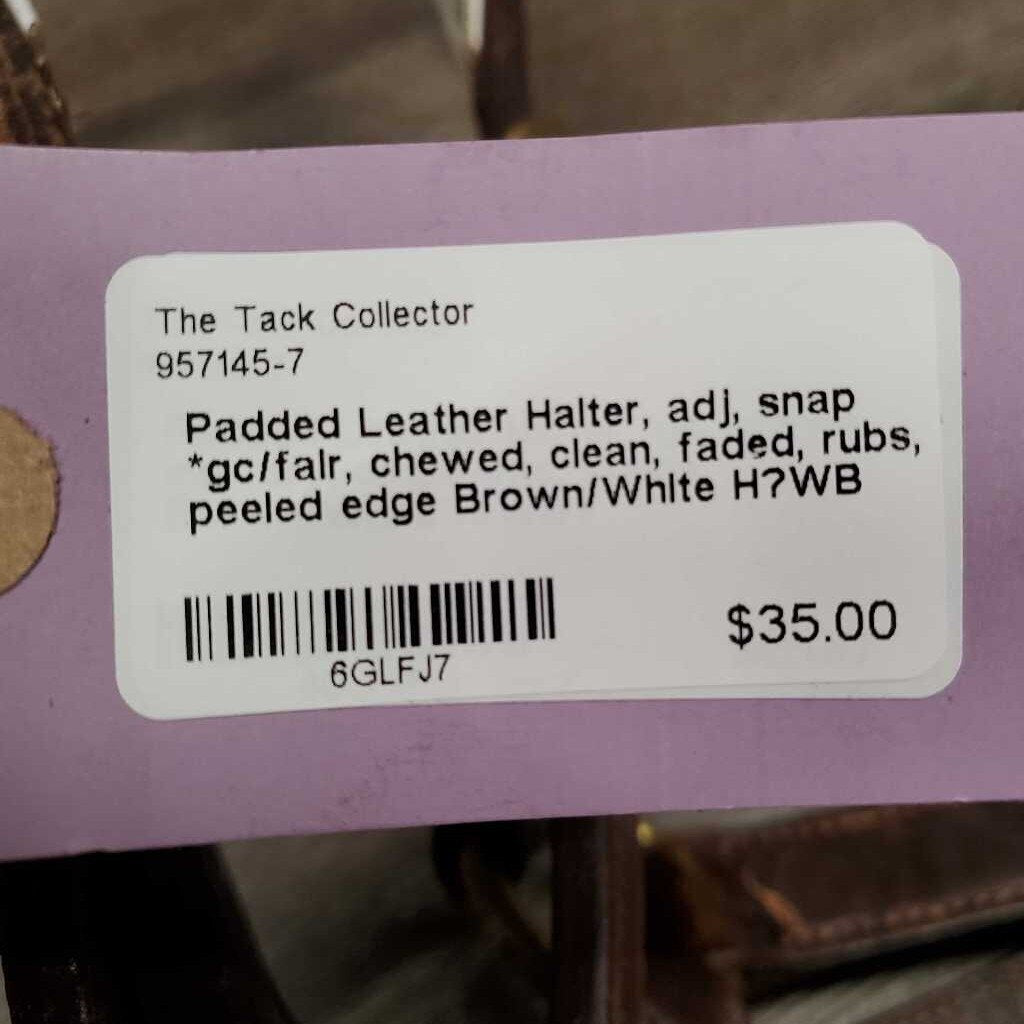 Padded Leather Halter, adj, snap *gc/fair, chewed, clean, faded, rubs, peeled edge