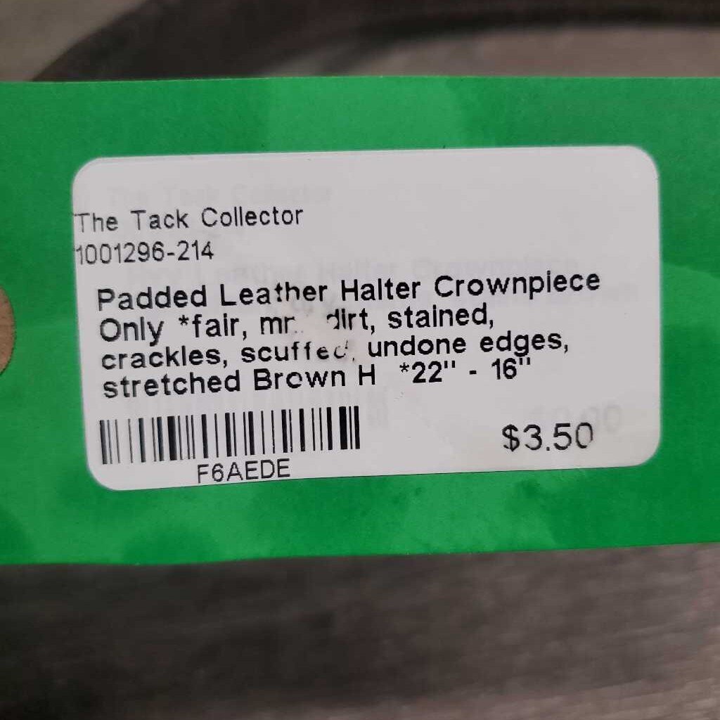 Padded Leather Halter Crownpiece Only *fair, mnr dirt, stained, crackles, scuffed, undone edges, stretched