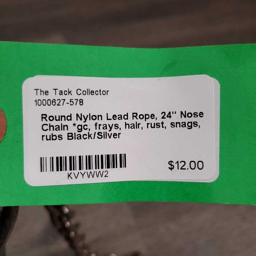 Round Nylon Lead Rope, 24" Nose Chain *gc, frays, hair, rust, snags, rubs