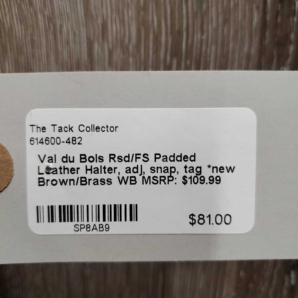 Rsd/FS Padded Leather Halter, adj, snap, tag *new