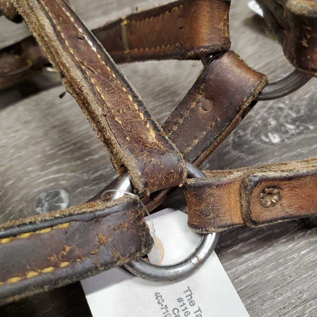 Slip Nose Leather Halter* gc/fair, older, clean, stains, scraped, cuts, dents, rubbed, rust