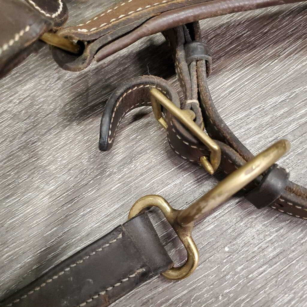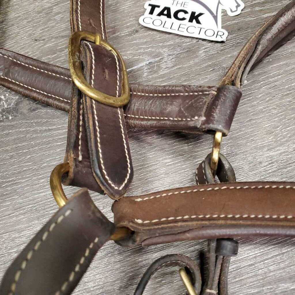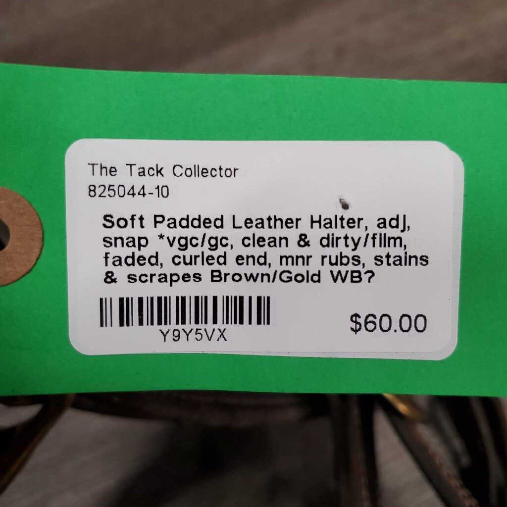 Soft Padded Leather Halter, adj, snap *vgc/gc, clean & dirty/film, faded, curled end, mnr rubs, stains & scrapes