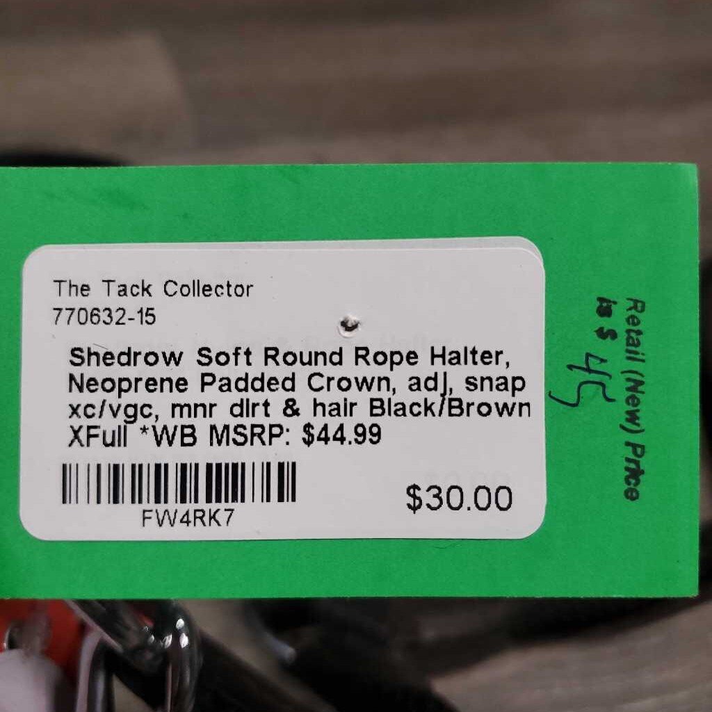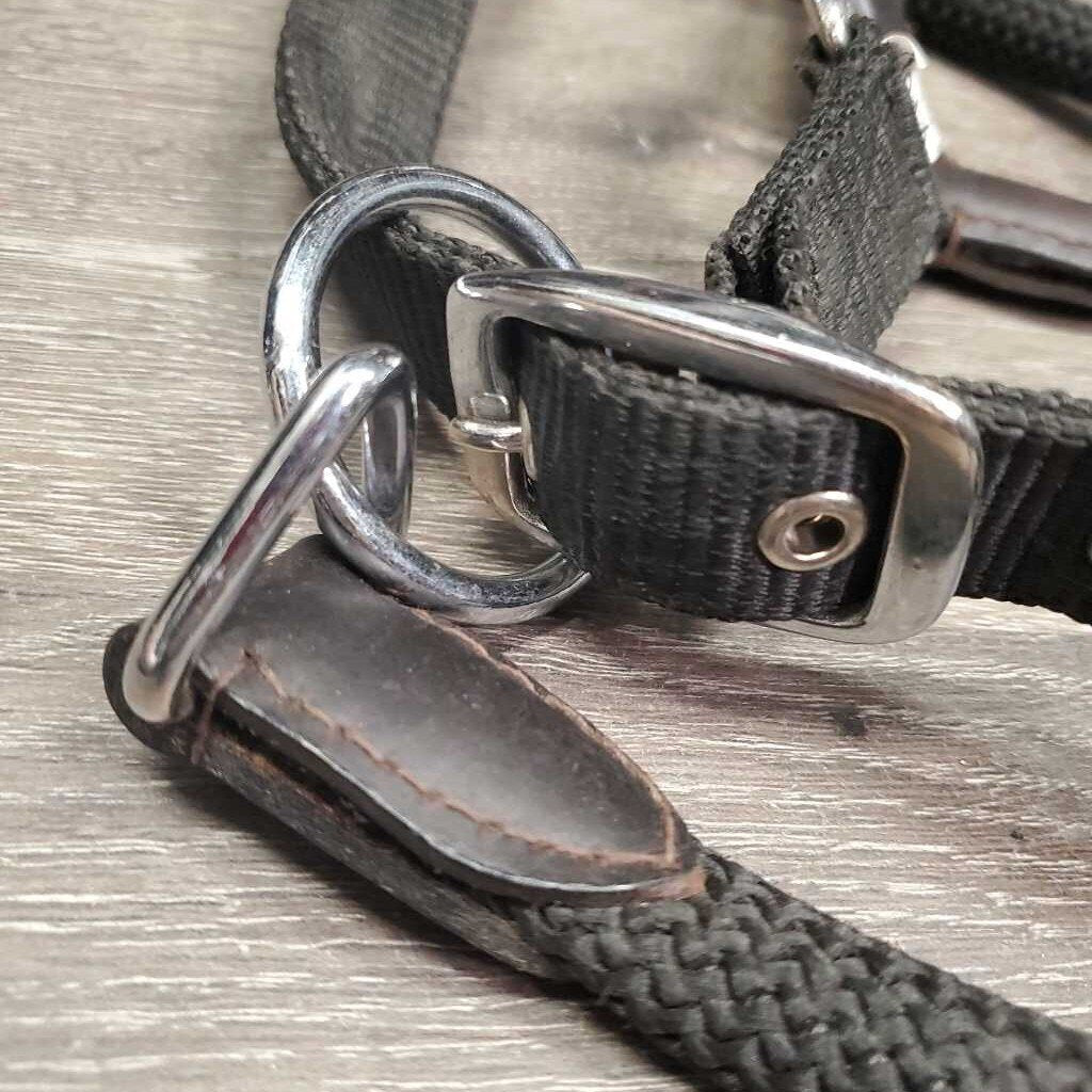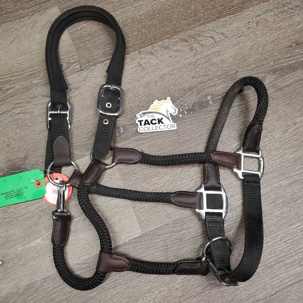 Soft Round Rope Halter, Neoprene Padded Crown, adj, snap xc/vgc, mnr dirt & hair