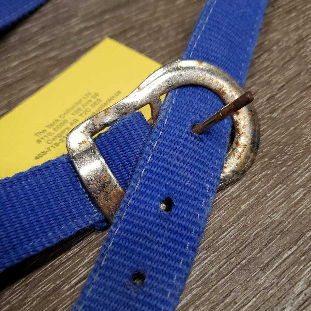 Stiff Nylon Halter, adj *gc/fair, clean, rusty, faded, v.rusty, rough/scratchy, edge frays