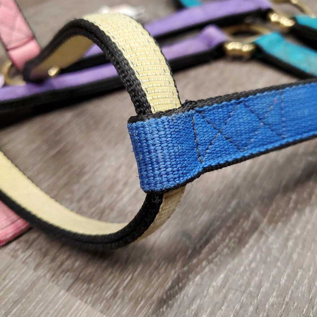 Stiff Nylon Halter *gc, faded, rubs, hair, clean, stains, edge rubs