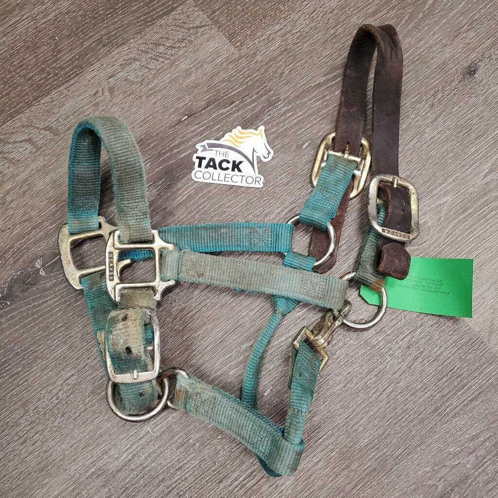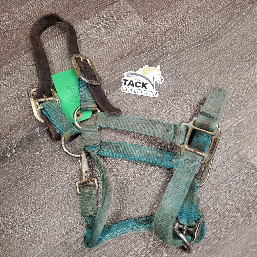 Thick Nylon Breakaway Halter, snap, adj * fair, faded, v.stiff, twisted, faded, v.stained, curled