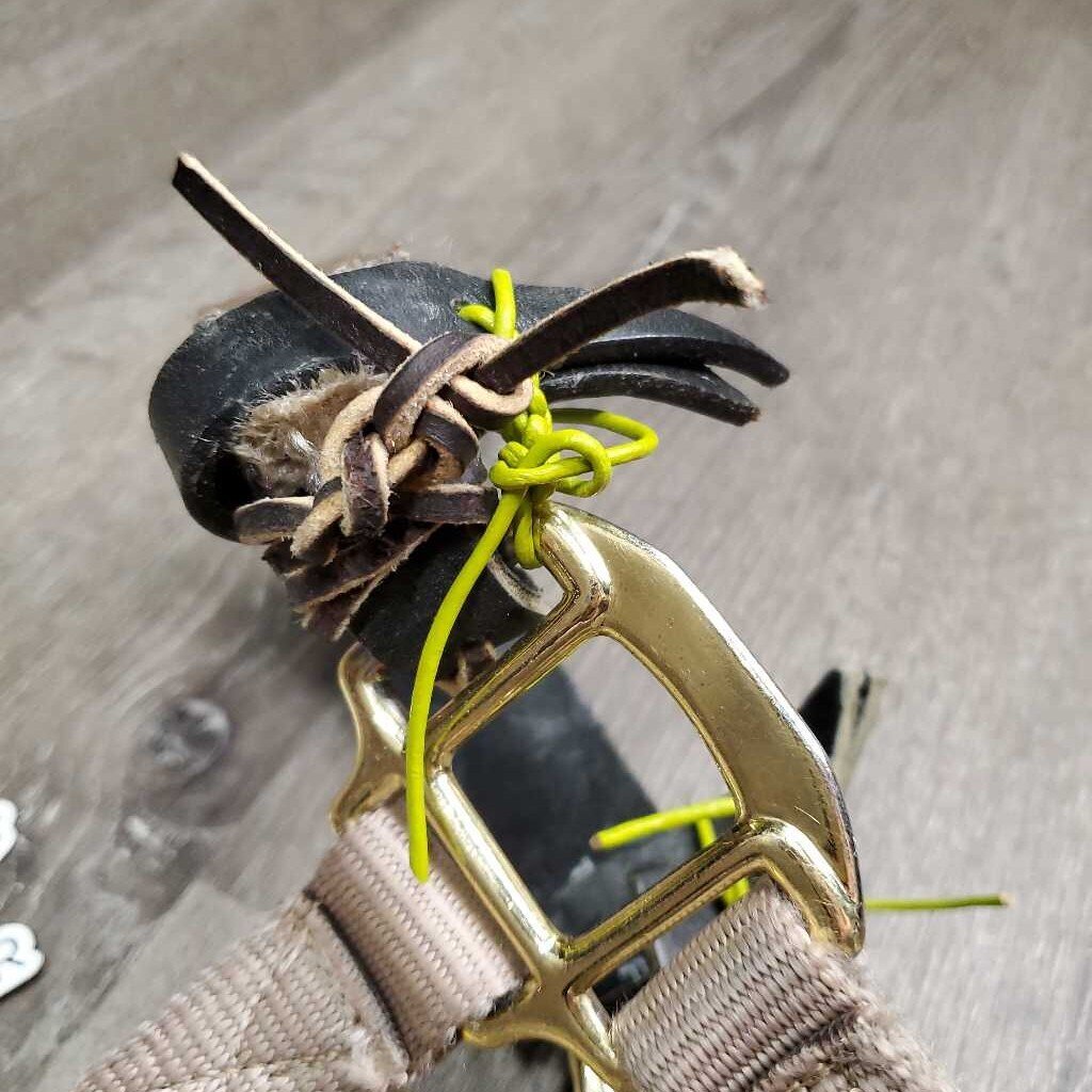 Thick Nylon Halter, adj, snap, tied on leather lined noseband *gc, clean, stains, dingy, mnr frayed holes, rubs, snags