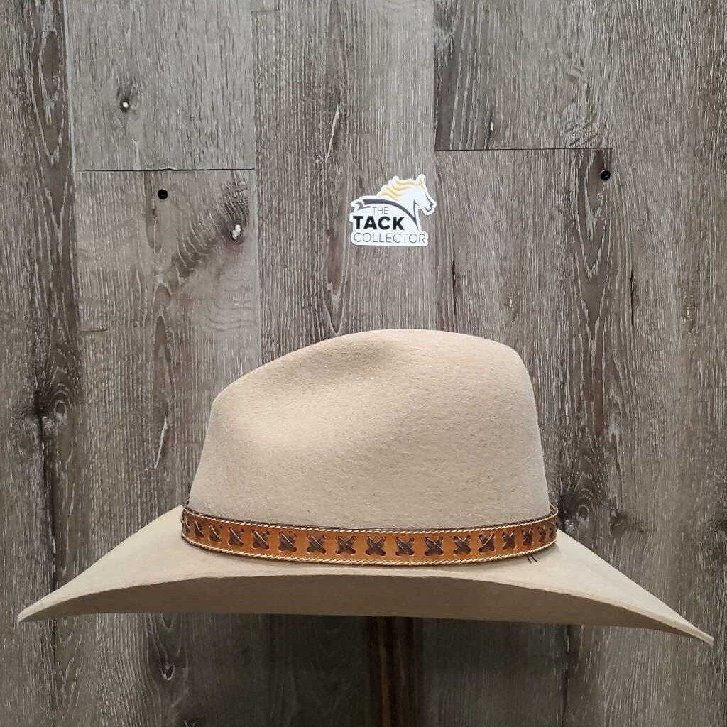 Felt Cowboy Hat, Laced Leather Hat Band *xc, mnr brim & inner brow stains