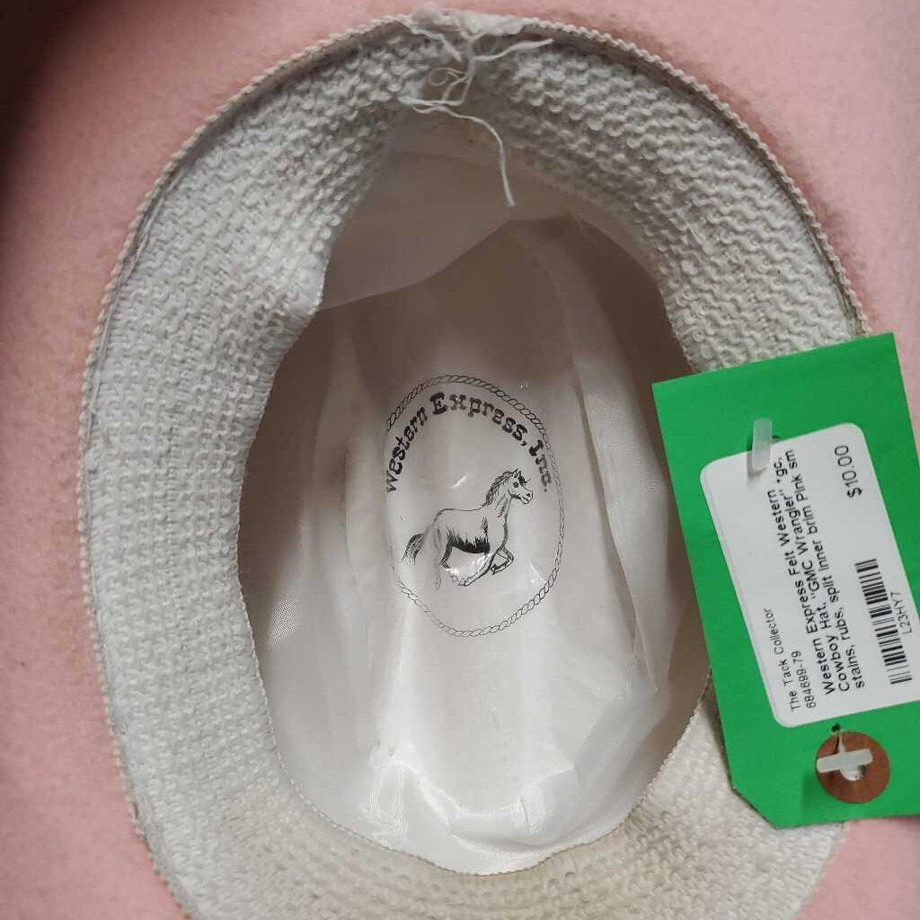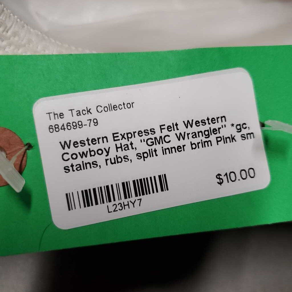 Felt Western Cowboy Hat, "GMC Wrangler" *gc, stains, rubs, split inner brim