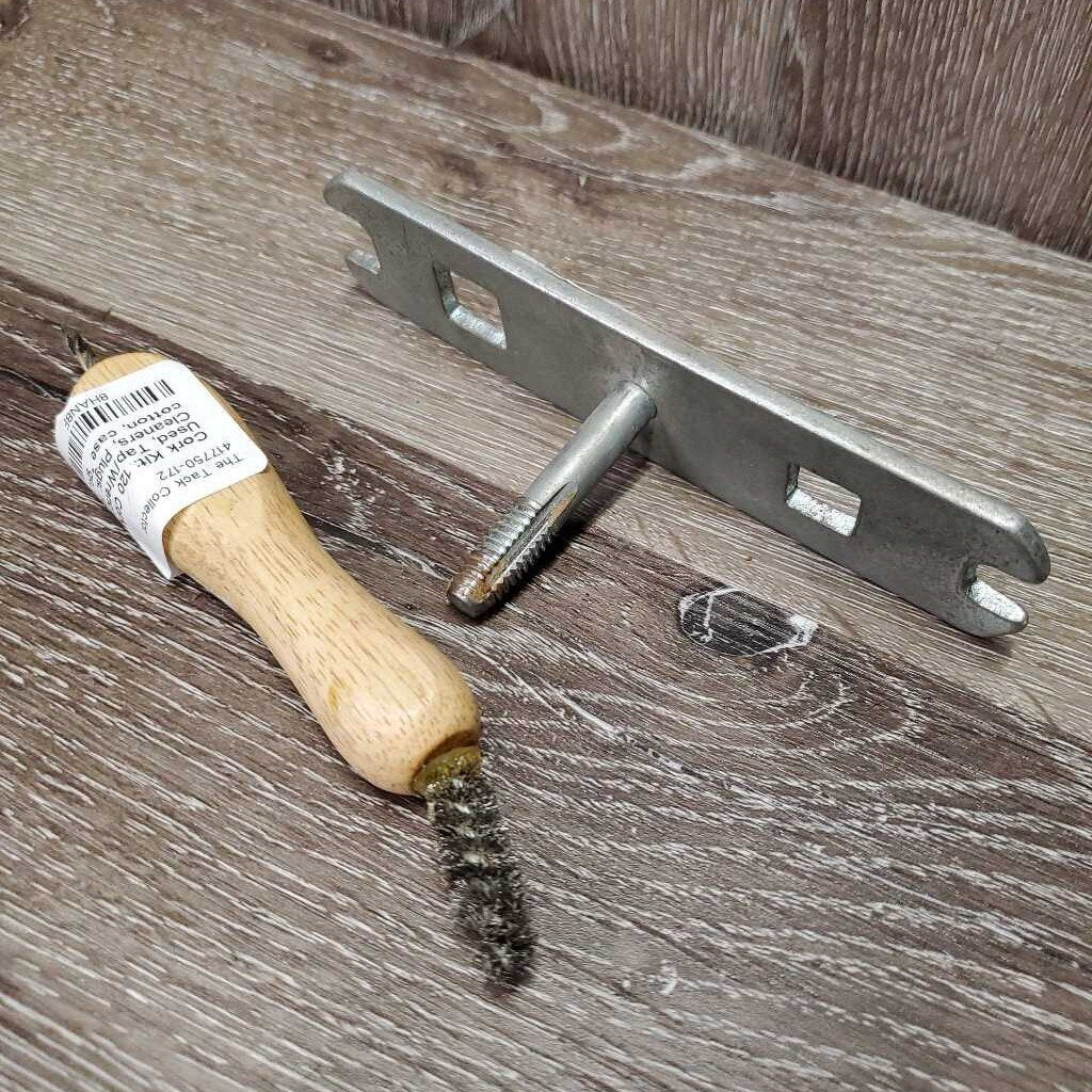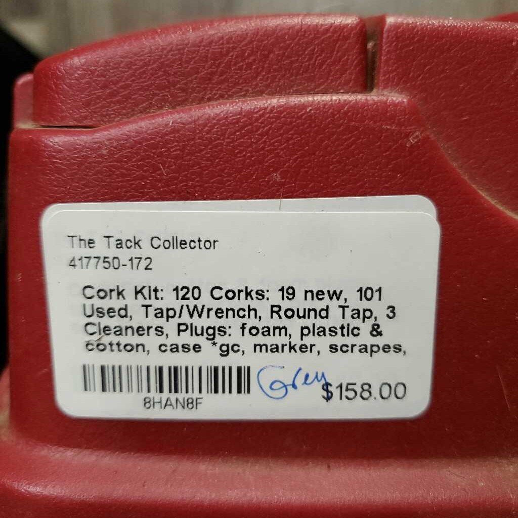 Cork Kit: 120 Corks: 19 new, 101 Used, Tap/Wrench, Round Tap, 3 Cleaners, Plugs: foam, plastic & cotton, case *gc, marker, scrapes, dirt, rust