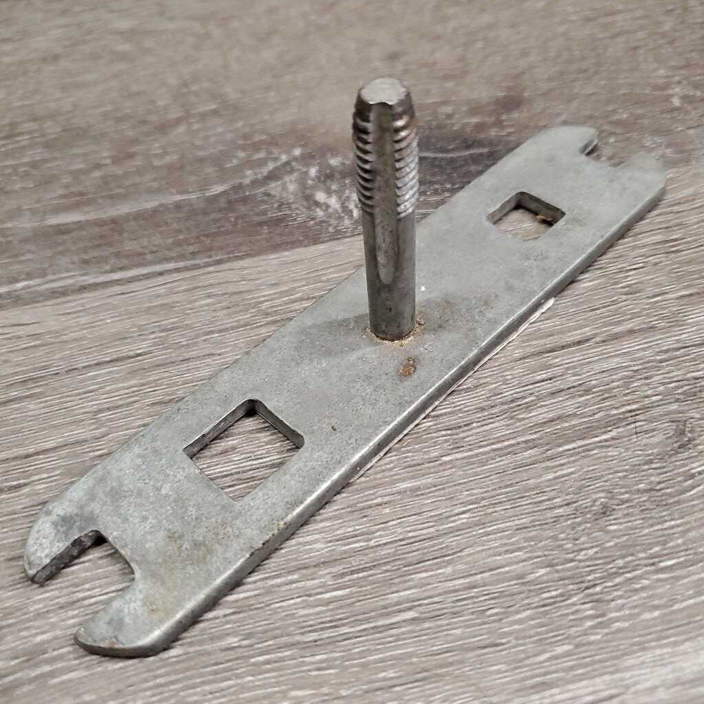 Convenient 2-in-1 tool; T-tap cleans and re-threads and the wrench helps remove studs. Works for 10 or 12 square head studs. Convenient 2-in-1 tool T-tap cleans and re-threads Wrench helps remove studs Works for 10 or 12 square head studs