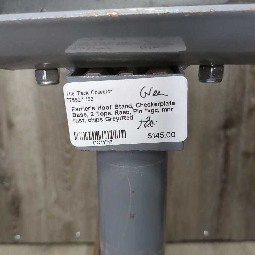 Farrier's Hoof Stand, Checkerplate Base, 2 Tops, Rasp, Pin *vgc, mnr rust, chips