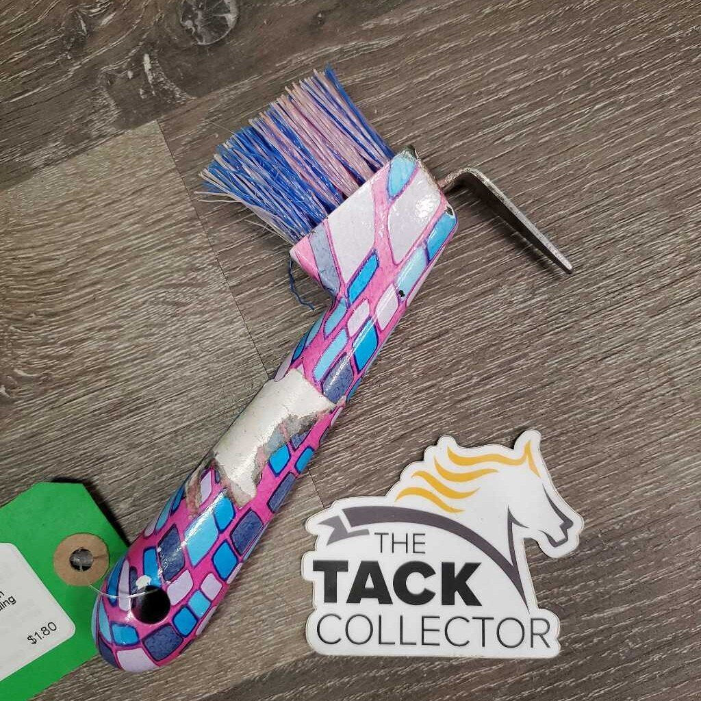 Plastic Hoof Pick, bristle brush *vgc, taped, rubs, stains, fading
