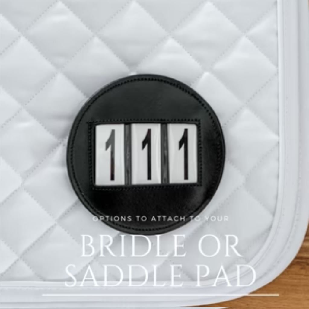 Versatile Number Display: Designed to hold three interchangeable numbers, this holder offers flexibility for all combinations. Secure Attachment Options: Choose between a thick, durable, industrial-strength pin for secure attachment to a saddle pad or a strong clasp for easy mounting on the bridle. Quality Construction: Each holder is meticulously handmade in small batches by our leather workers using high-quality materials, ensuring longevity and reliability. Luxurious Velvet Pouch: Each holder comes with a plush, ultra-soft velvet pouch for dust-free storage in your tack box. Size: Our circle bridle numbers measure 4" in diameter, while the rectangular numbers are 4.5" x 3", providing options to match your preferred style and size.