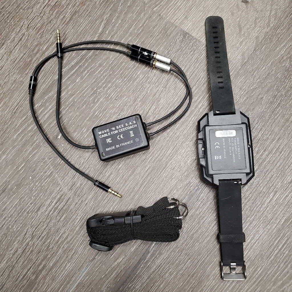 Tracking Camera System: Tracker, 3 Beacons, Watch, Headset/speaker, Tripod, Bag, 2x Chargers & 3 Cords *Works, Charges, No Manual, missing 2 USB Cords