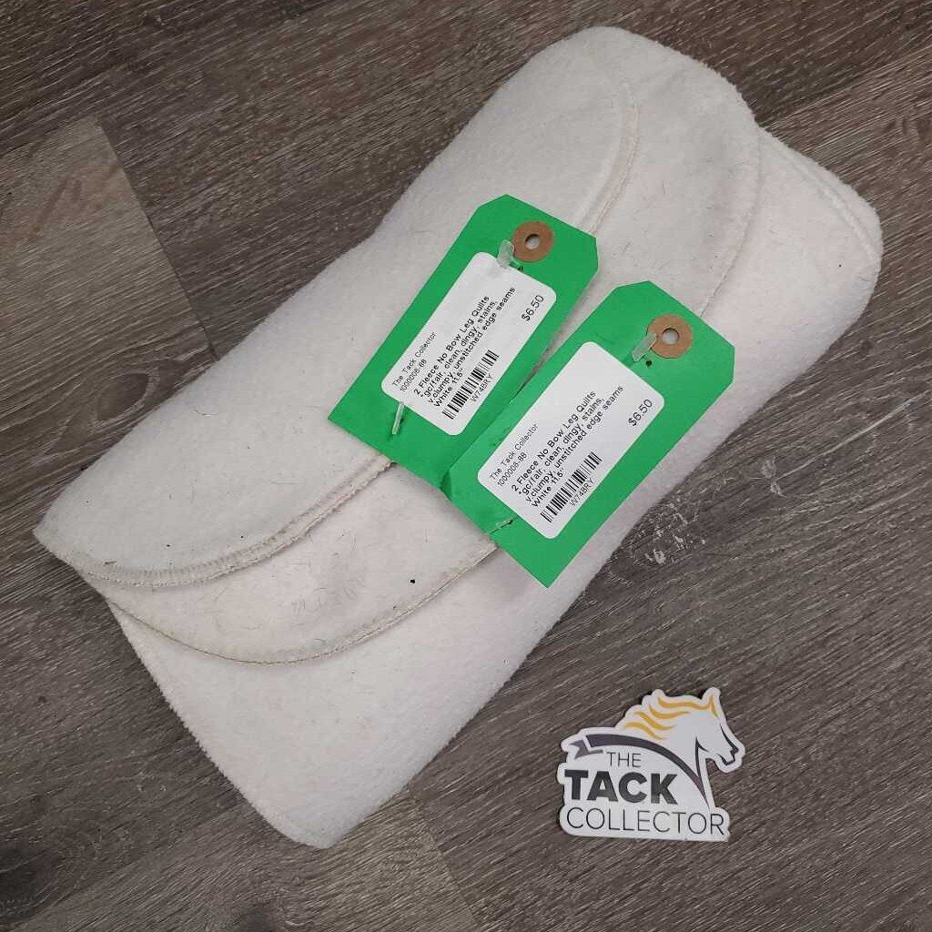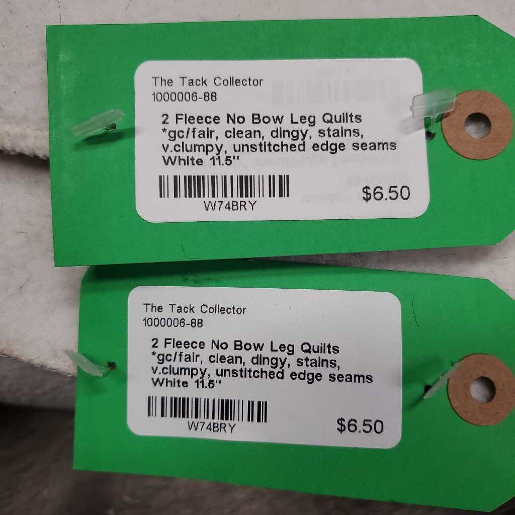 2 Fleece No Bow Leg Quilts *gc/fair, clean, dingy, stains, v.clumpy, unstitched edge seams