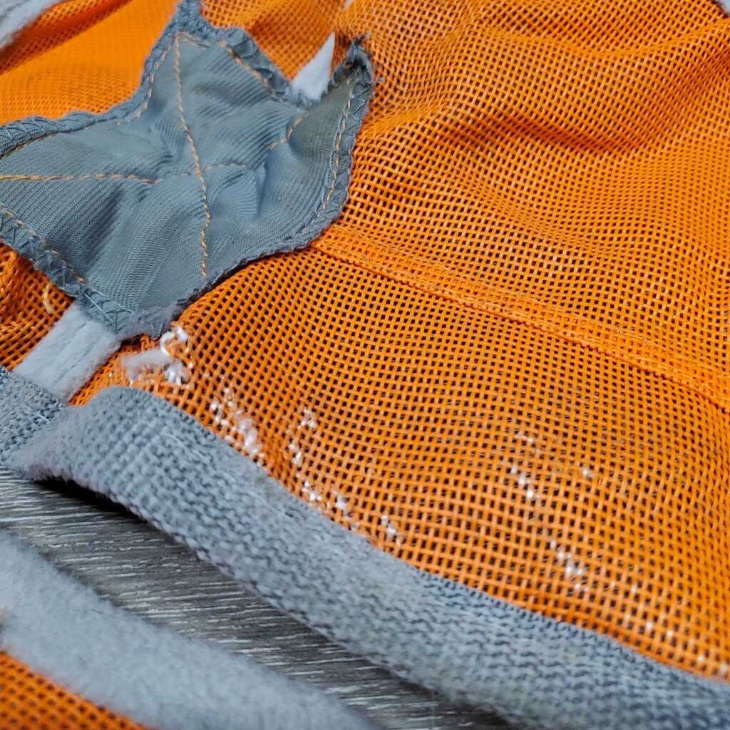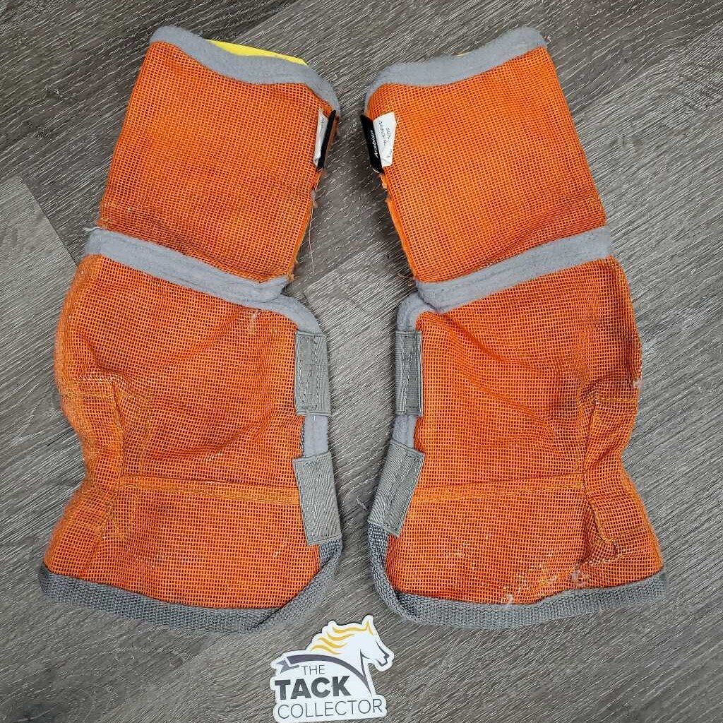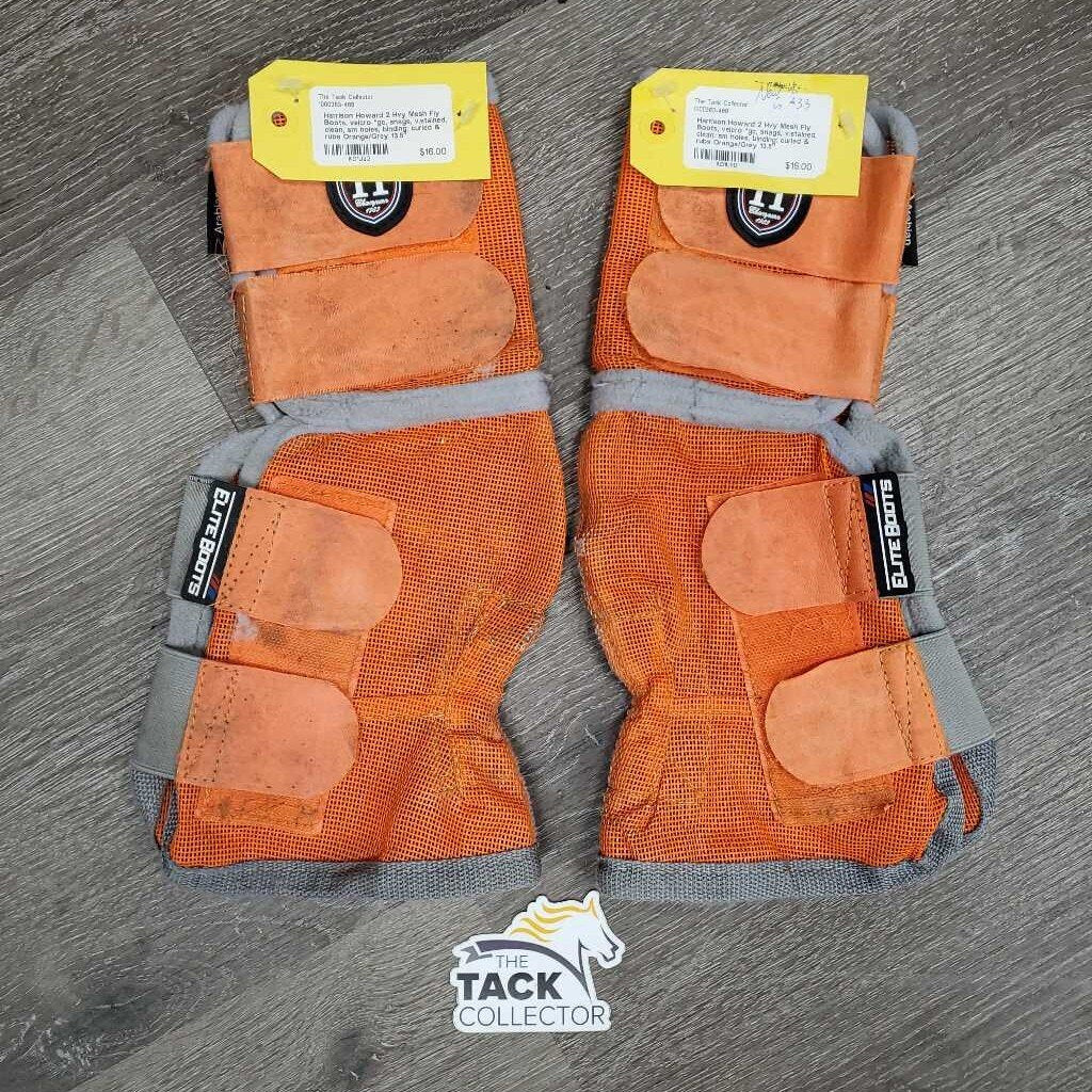 2 Hvy Mesh Fly Boots, velcro *gc, snags, v.stained, clean, sm holes, binding: curled & rubs