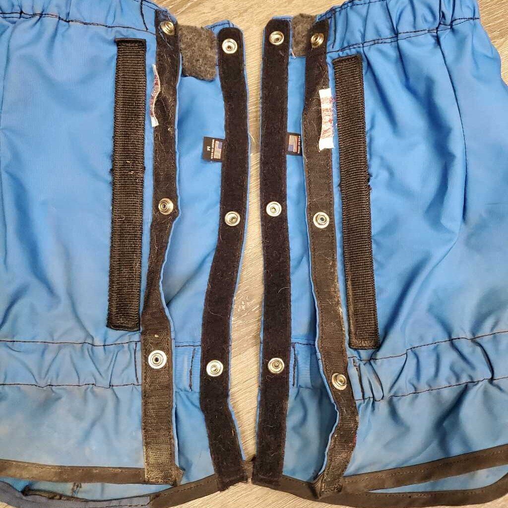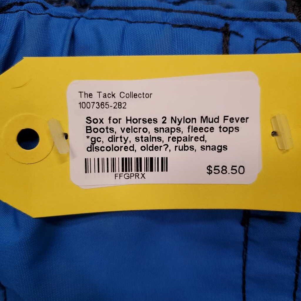 2 Nylon Mud Fever Boots, velcro, snaps, fleece tops *gc, dirty, stains, repaired, discolored, older?, rubs, snags