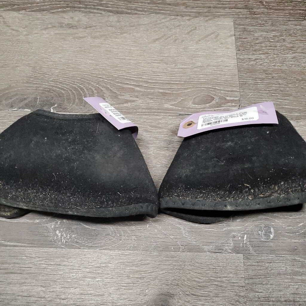 2 Wrap Around Neoprene No Turn Bell Boots, velcro *gc, hair, v.dirty, residue, faded, film