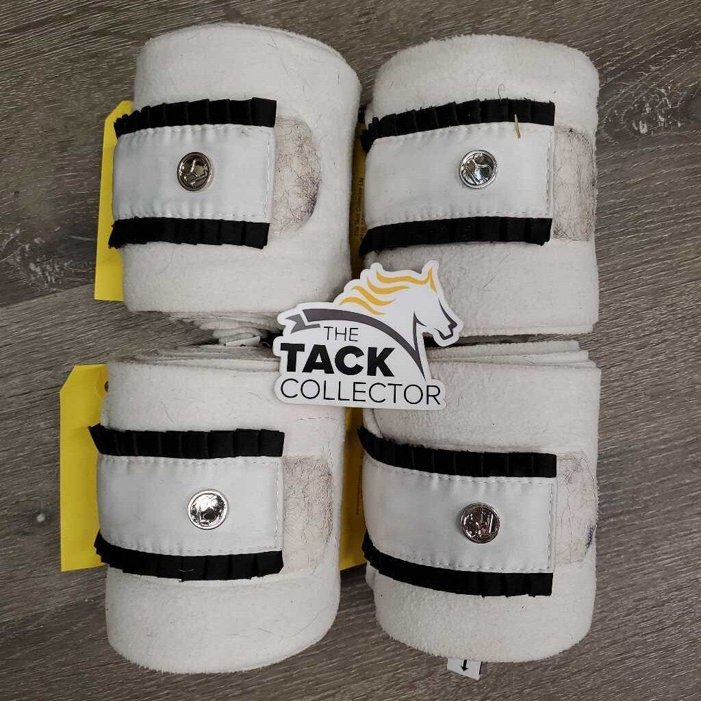 4 Fleece Polos, Satin, Ruffles *gc, clean, dingy, hairy, clumpy, hairy velcro
