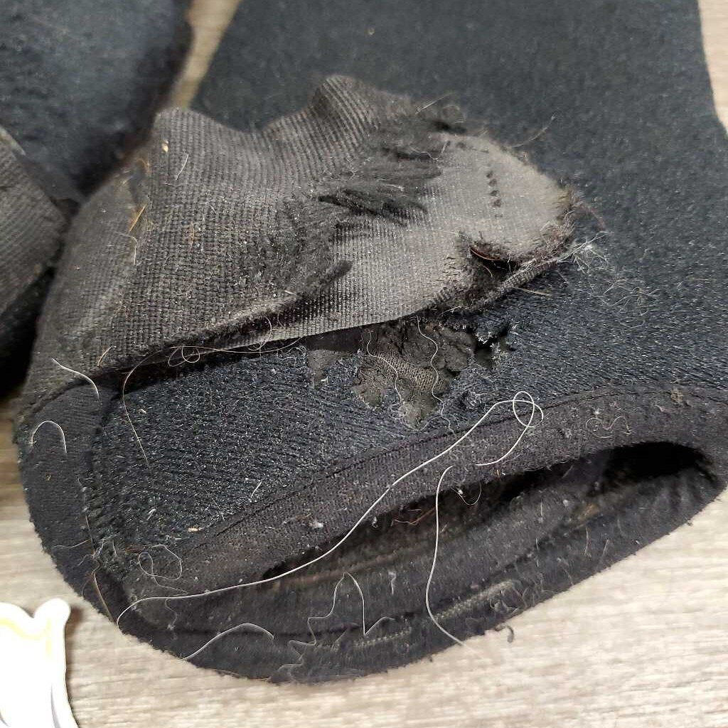 Closed Boots, velcro *fair, clean, hairy, v.snagged, pilly, rough & clumpy lining, hole, torn velcro, thin edges