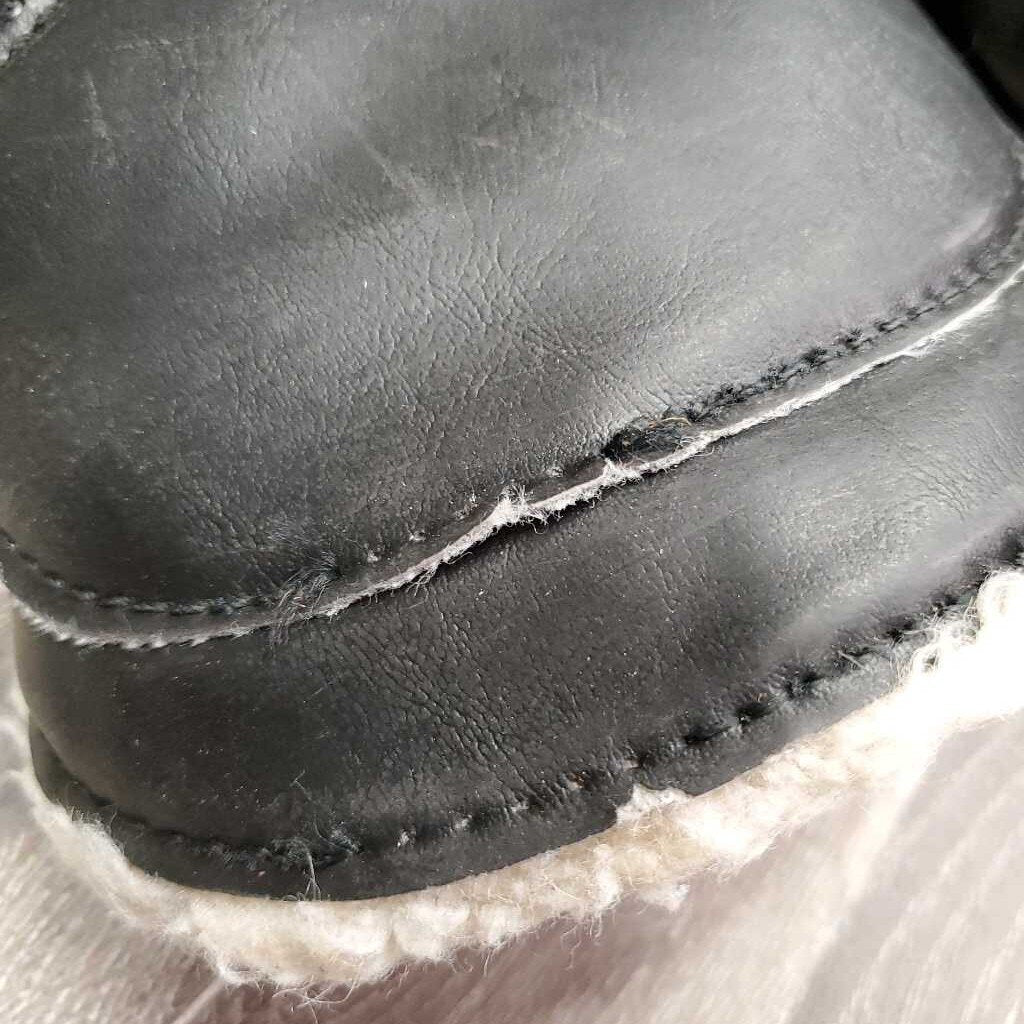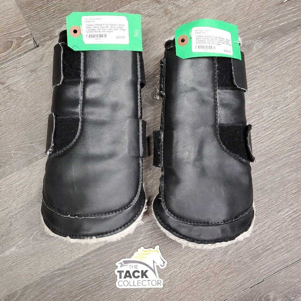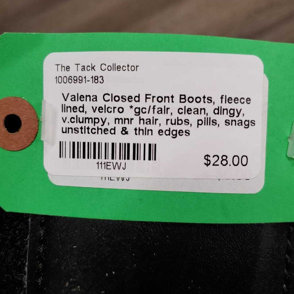 Closed Front Boots, fleece lined, velcro *gc/fair, clean, dingy, v.clumpy, mnr hair, rubs, pills, snags, unstitched & thin edges
